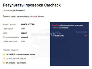 В системе Carcheck у данного авто есть один штраф на сумму 5500 сомов.