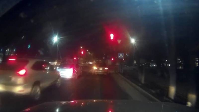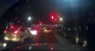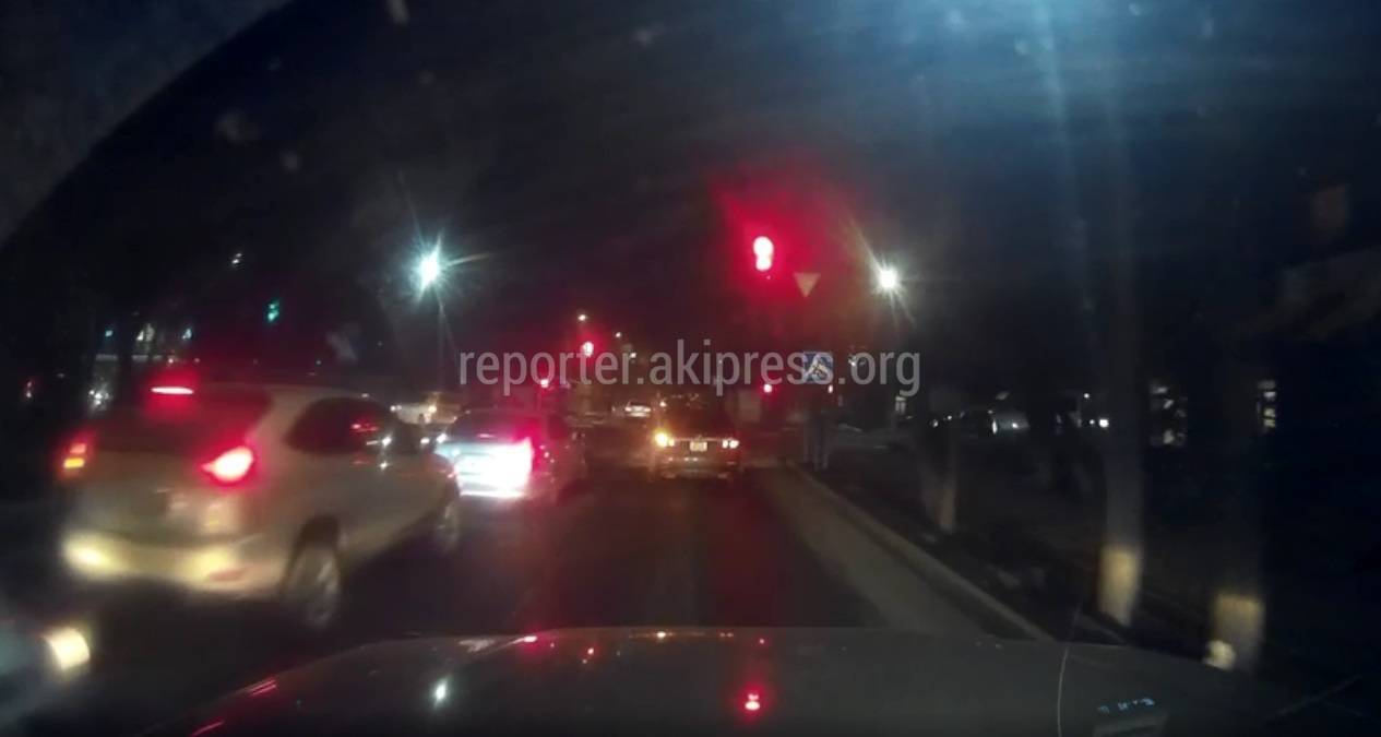 Водитель на автомобиле «Тойота Камри» проехал на красный сигнал светофора на улице Элебаева, сообщает очевидец.