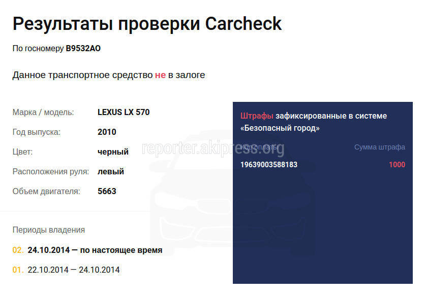 Lexus LX 570 припарковали на остановке. Фото горожанина 3 марта 2021, 10:47 (добавлено: 3 марта 2021, обновлено: 4 марта 2021) 2642 Водитель припарковал свой автомобиль марки Lexus LX 570 на остановке, сообщил активист Болот Ибрагимов у себя в соцсетях. В Carcheck у данного авто есть штраф 1000 сомов. 12 Есть новость? Сообщи нам по номеру 0550 01 03 11 или через приложение «Репортер АКИpress»! -Поделиться-Твиттер-WhatsApp- Телеграм 2642 Просмотры Читайте Репортер в t.me/ReporterAKIpress