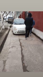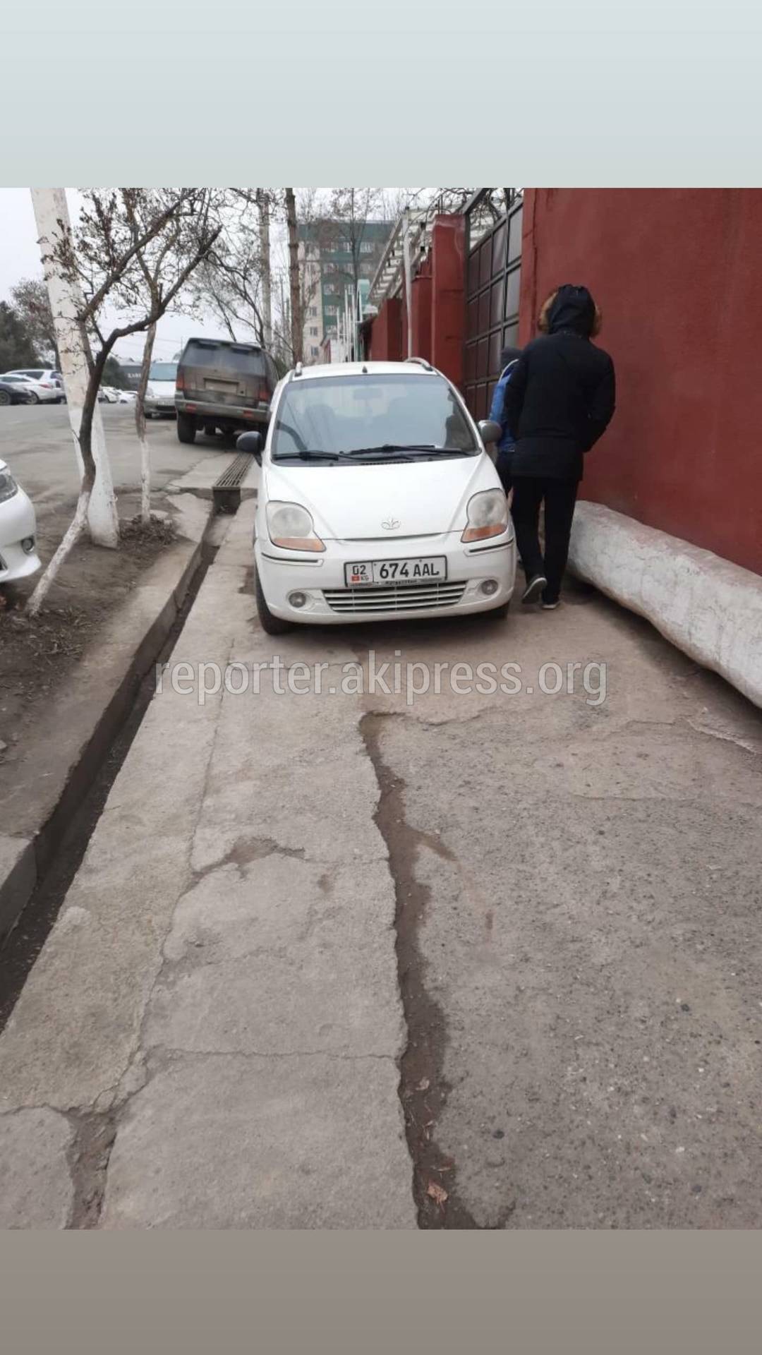 В Оше «Матиз» припаркован на тротуаре. Фото 3 марта 2021, 13:44 (обновлено: 4 марта 2021) 524 В Оше водитель припарковал свой автомобиль «Дэу Матиз» на тротуаре, сообщает общественный активист Азамат Ормокеев. «Припарковался на тротуаре и закрыл проход для пешеходов», - пишет он. 13 Есть новость? Сообщи нам по номеру 0550 01 03 11 или через приложение «Репортер АКИpress»! -Поделиться-Твиттер-WhatsApp- Телеграм 524 Просмотры Читайте Репортер в t.me/ReporterAKIpress