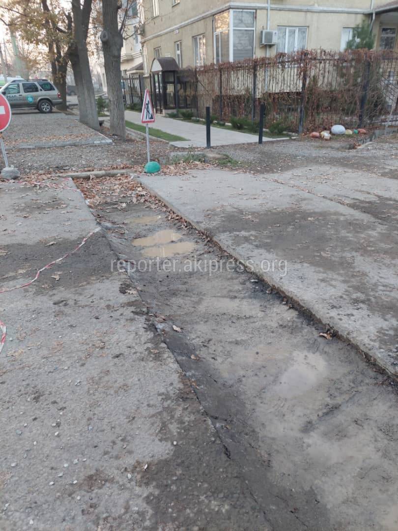 По его словам, асфальт был вскрыт на пересечении с улицей Айни около недели назад при проведении коммуникаций к зданию.