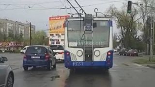 Пресс-служба мэрии города Бишкек отвечает на сообщение о том, что четыре троллейбуса №11 поворачивают со второго ряда в выходной день без пробок:
