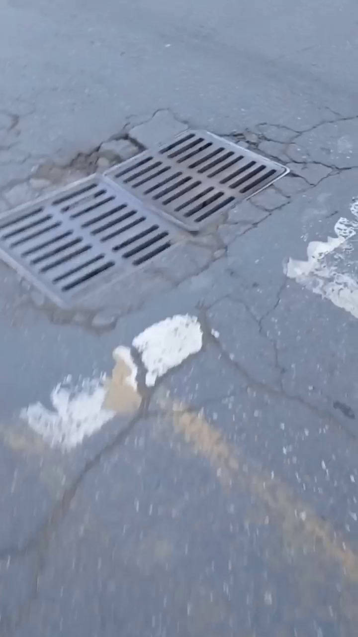 «Проваливается решетка ливнеприемника и рядом провалился асфальт. В яму заезжают машины. Вода не проходит под дорогой», - пишет он.