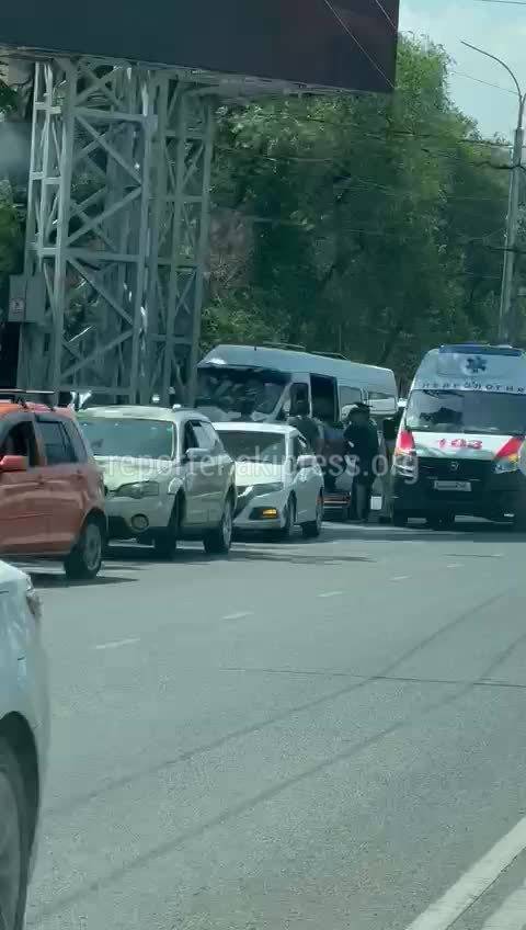 На проспекте Айтматова маршрутка №132 врезалась в столб, сообщает очевидец.