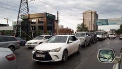По ее словам, машины стоят от самой магистрали до улицы Юнусалиева.