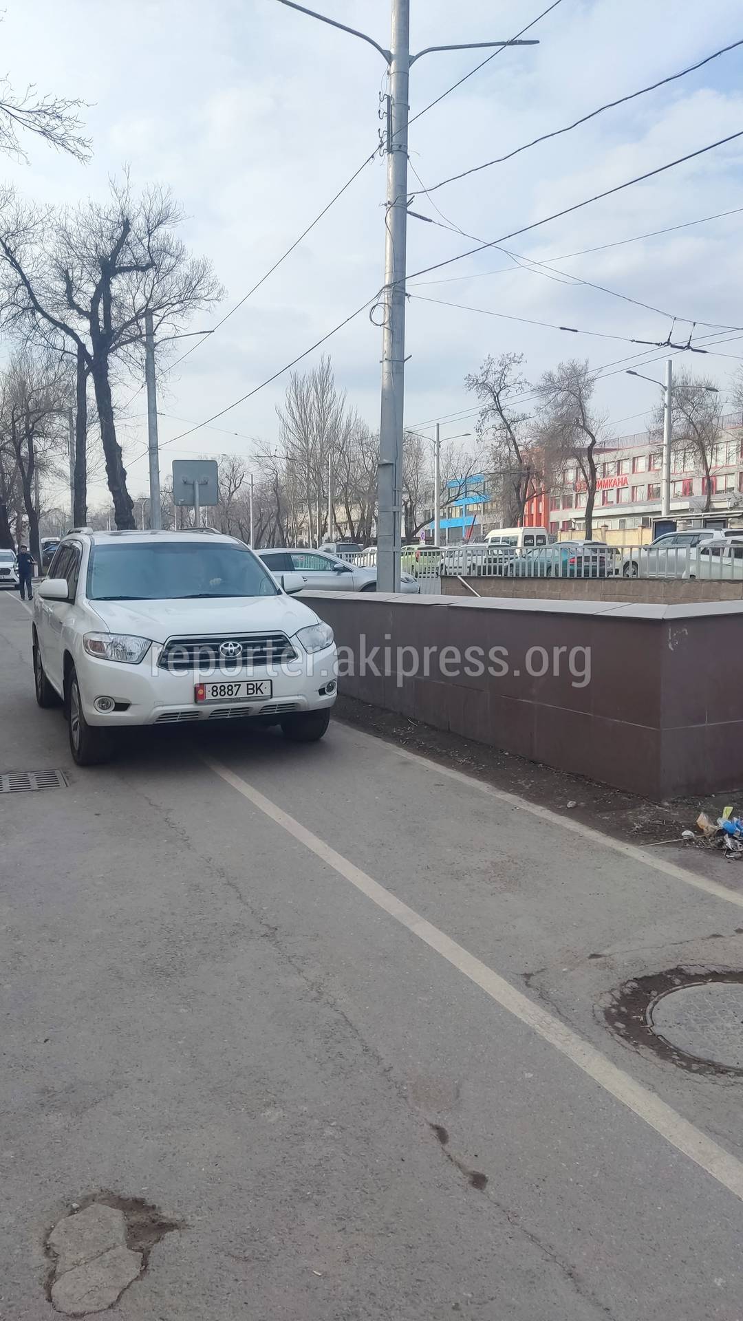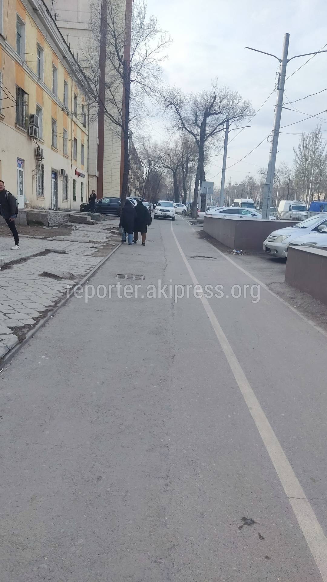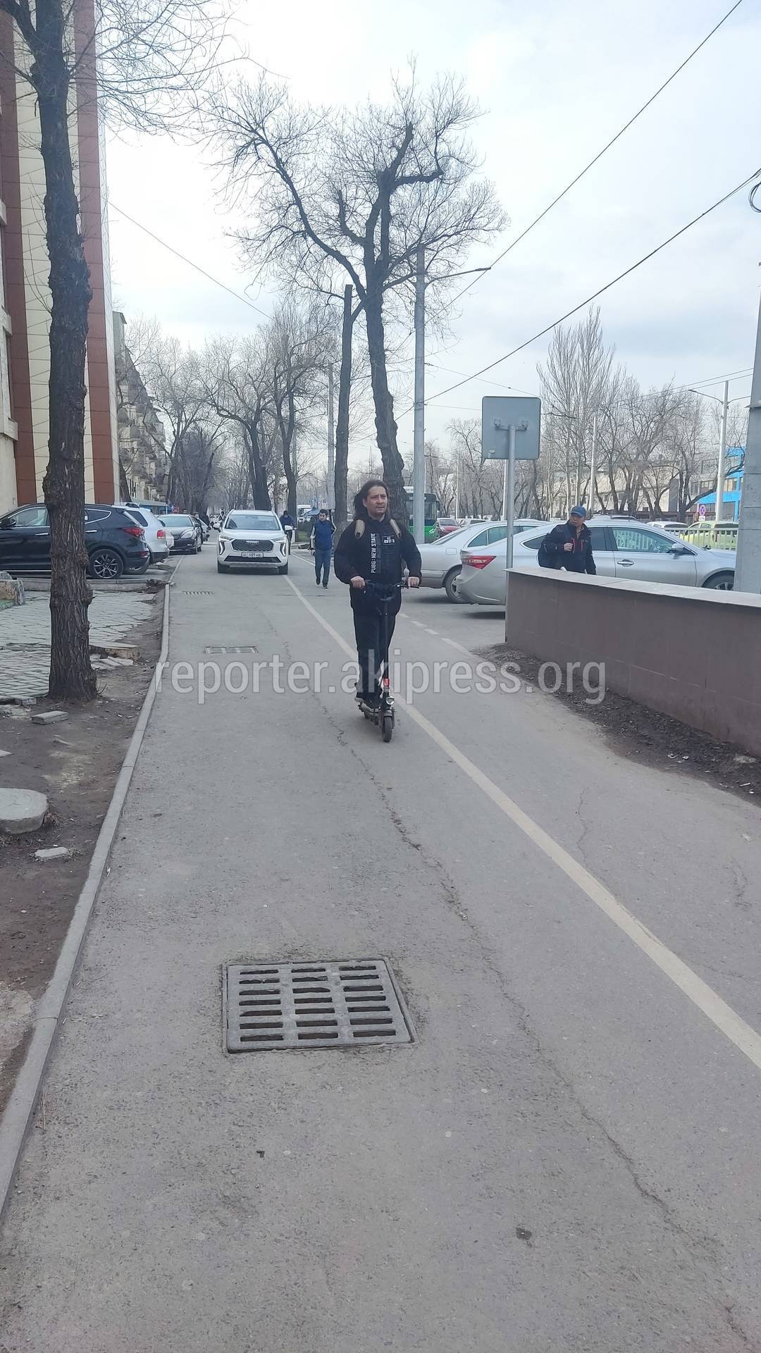Водители продолжают ездить по тротуару и велодорожке на проспекте Айтматова, сообщает горожанин.