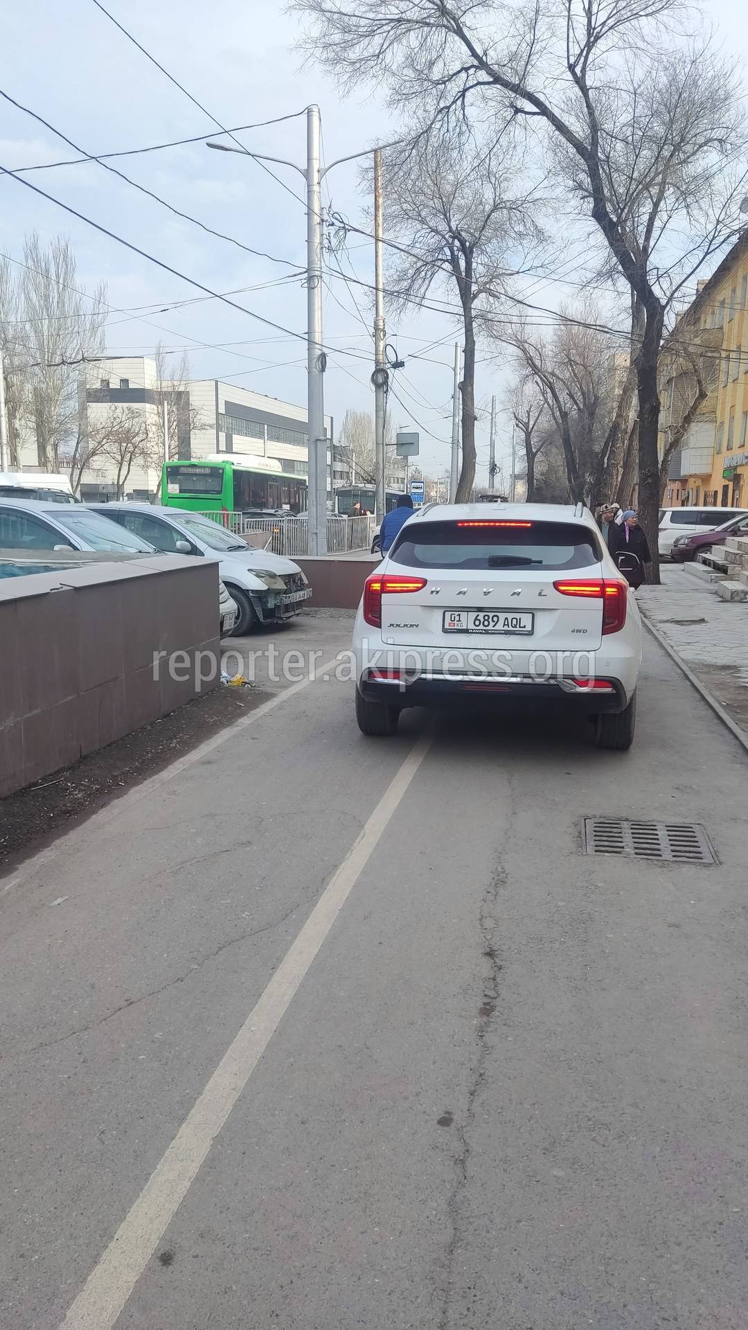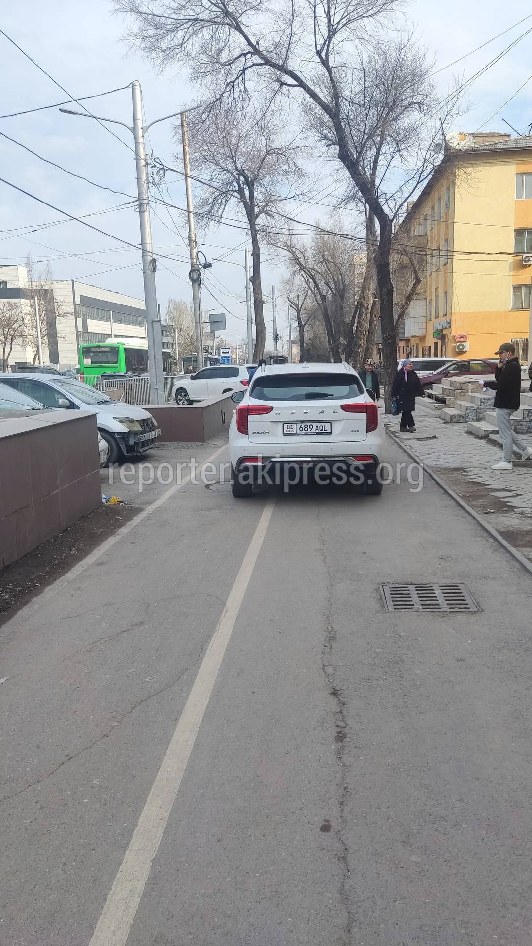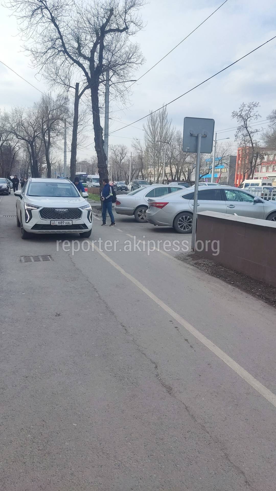 Водители продолжают ездить по тротуару и велодорожке на проспекте Айтматова, сообщает горожанин.