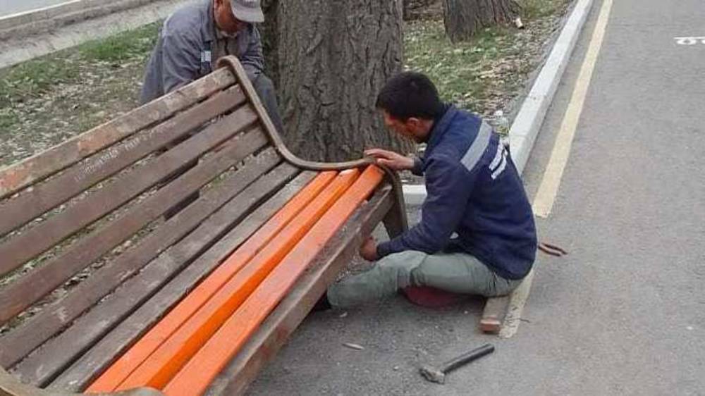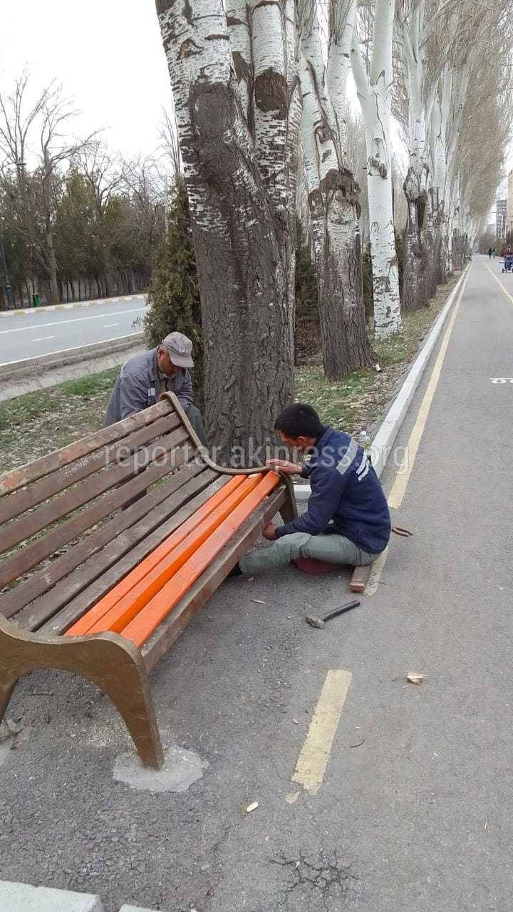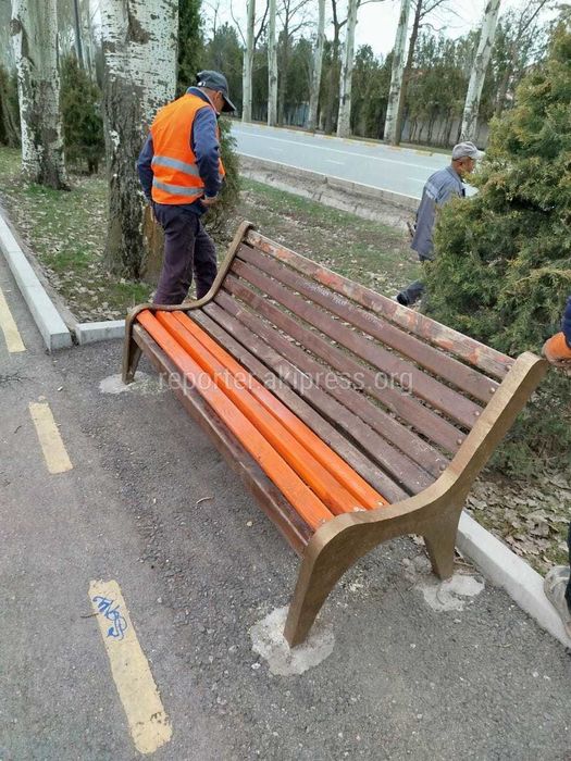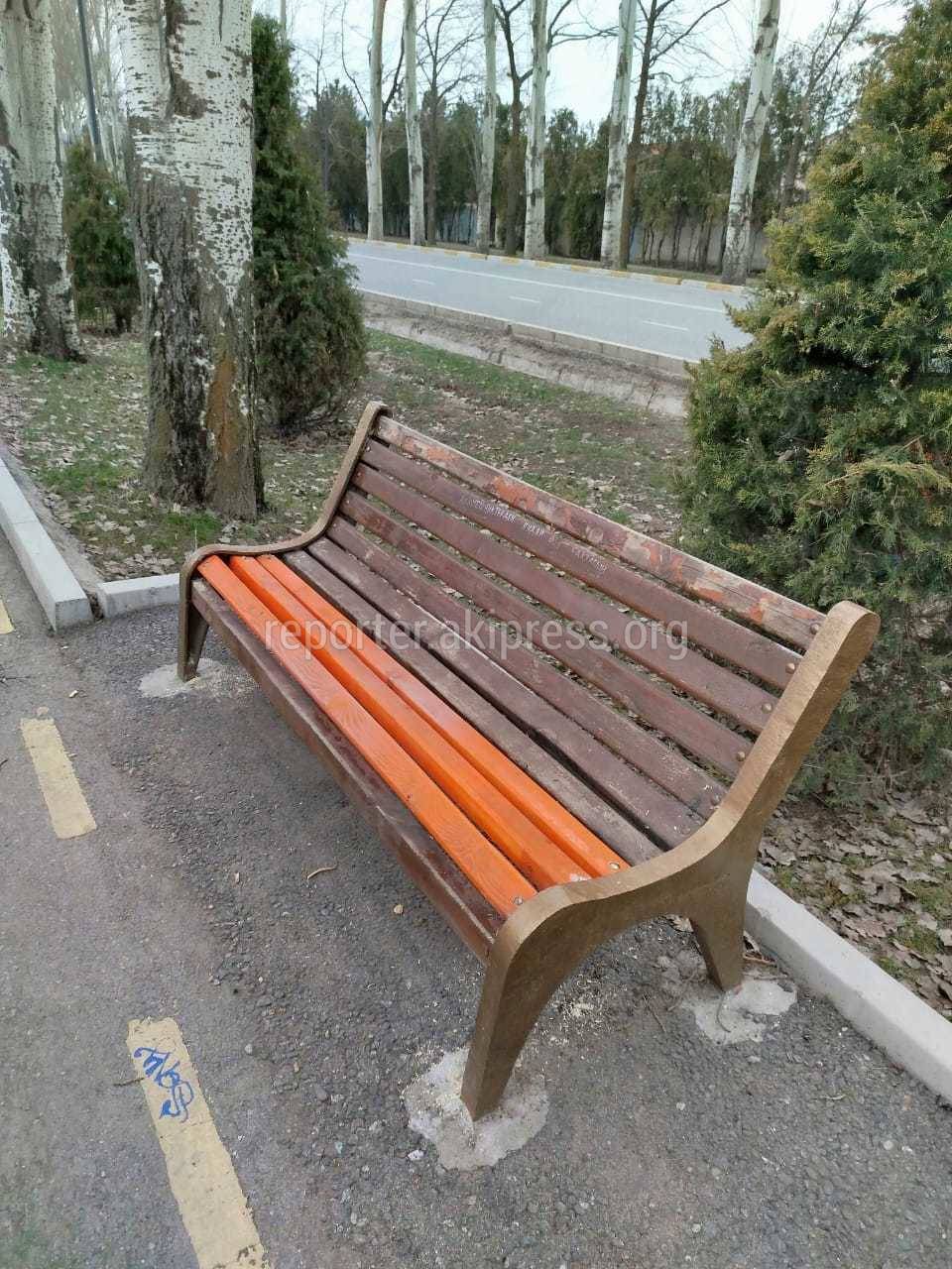 «По информации МП «Бишкекасфальтсервис», сотрудники предприятия восстановили скамейку по данному адресу. Как только потеплеет, скамейка будет покрашена».