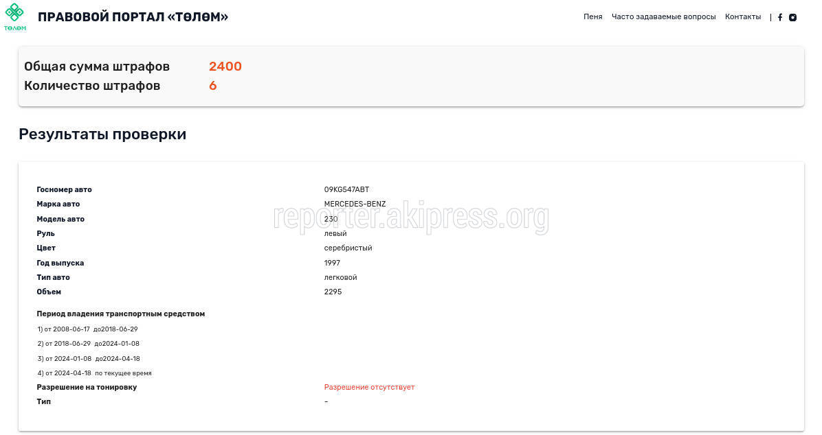 «Мерседес» заблокировал остановку возле ЦУМа. Фото горожанина 15 окт. 2024, 11:35 (обновлено: 15 окт. 2024) 969 Водитель автомобиля «Мерседес-Бенц 230» (госномер 09KG547ABT) заблокировал остановку на проспекте Чуй, сообщает горожанин. Фотография сделана на пересечении с улицей Шопокова. На сайте Tolom.kg у данного авто есть 2400 сомов штарфов. 11 Есть новость? Сообщи нам по номеру 0550 01 03 11 или через приложение «Репортер АКИpress»! -Поделиться-Твиттер-WhatsApp- Телеграм 969 Просмотры Читайте Репортер в t.me/ReporterAKIpress
