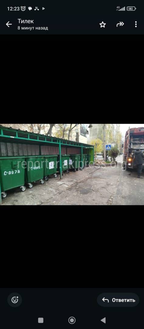 Пресс-служба мэрии города Бишкек отвечает на сообщение о том, что мусорные баки на Шопокова переполнены: