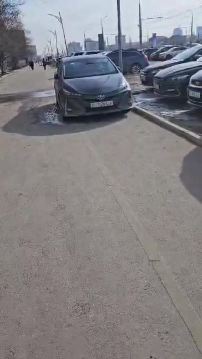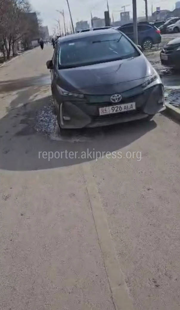 Также на тротуаре стоит «Тойота Приус» (госномер 04KG926ALA).