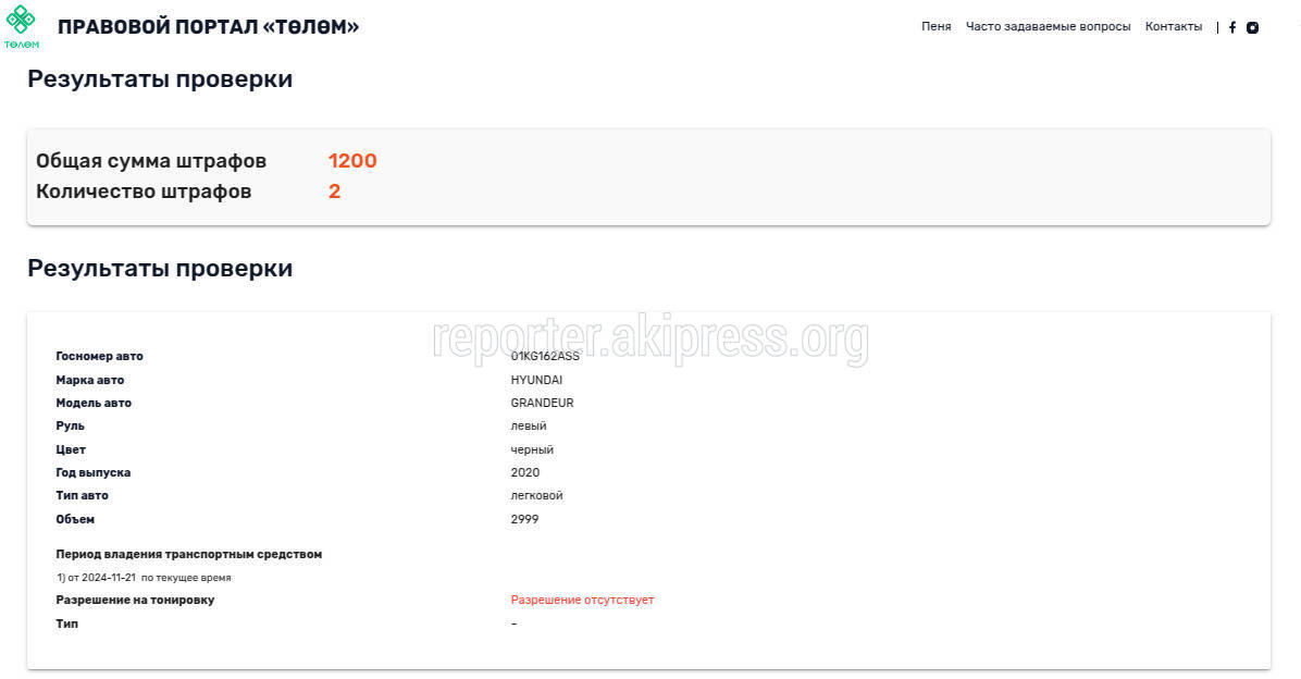 Ранее горожане уже жаловались на данную машину (тут и тут), у которой есть 1200 сомов штрафов на сайте Tolom.kg.