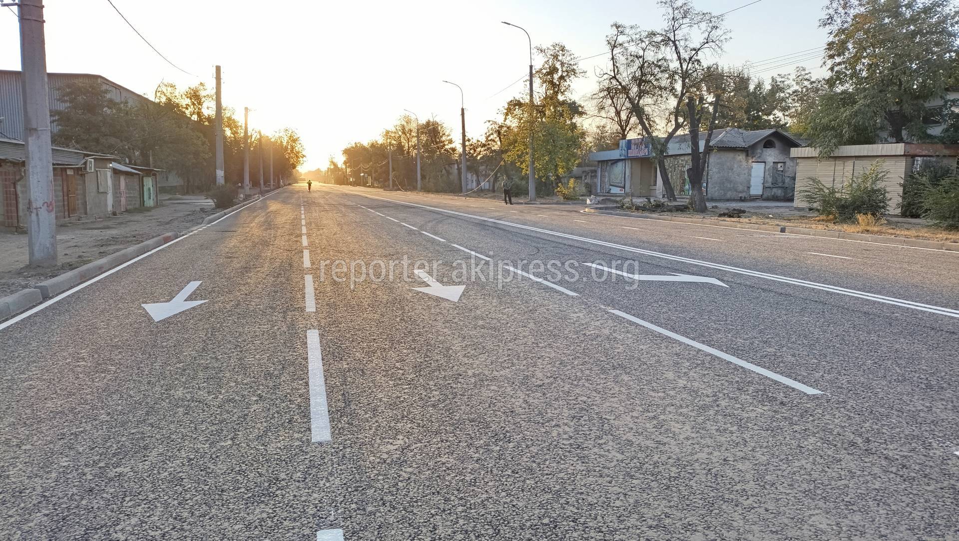 «После ремонта дорога на этом участке стала пятиполосной — 3 полосы в западном направлении и 2 полосы в восточном. Около Баткенского рынка наоборот — 3 полосы в восточном направлении и 2 полосы в западном», - пишет горожанин.
