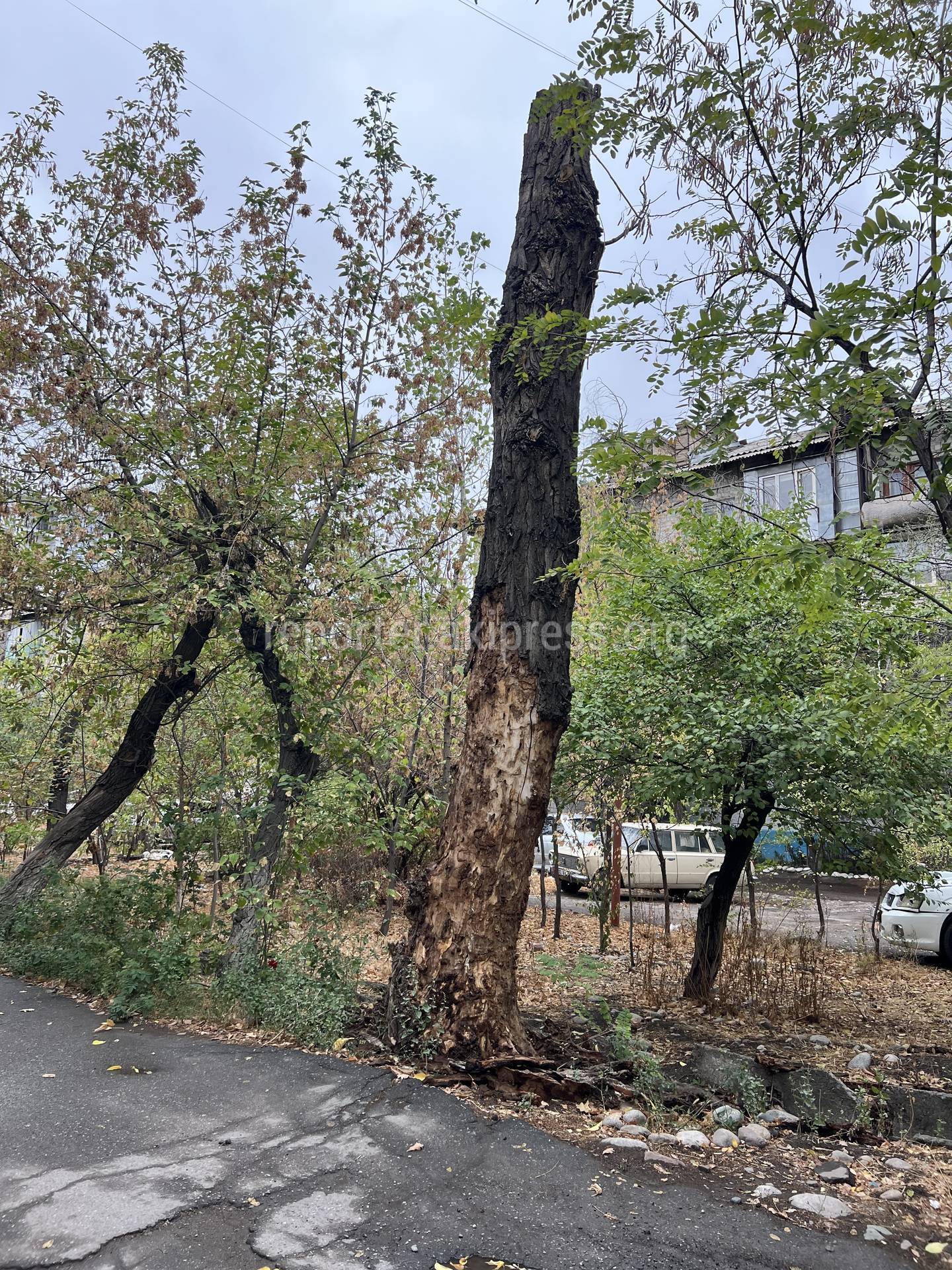 По его словам, ствол стоит уже давно и кора разваливается.