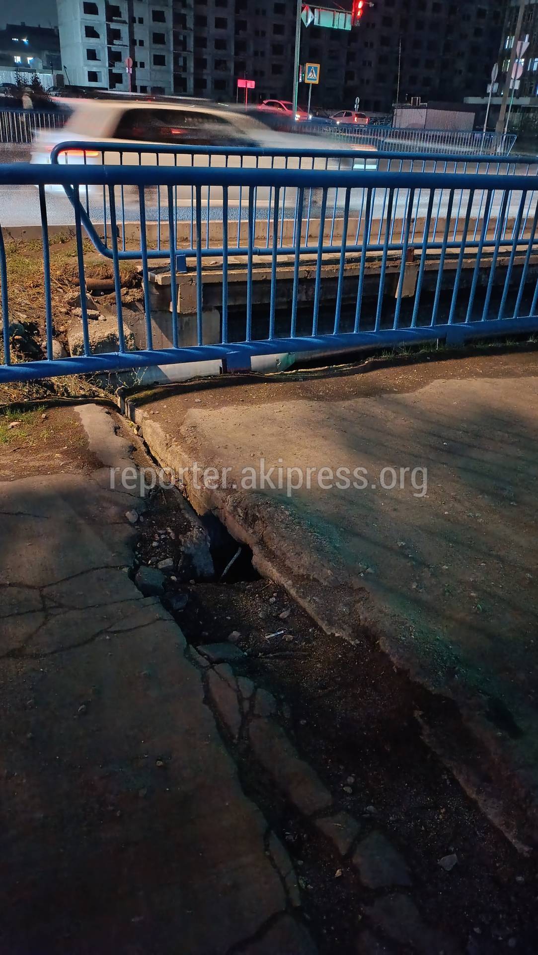 «Мост проваливается, появилась большой щель», - написал житель столицы.