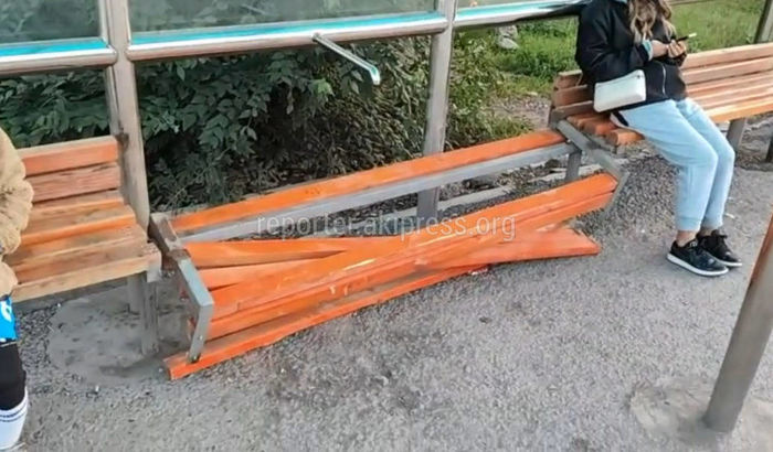 На остановке на улице Ахунбаева сломали скамейку, сообщает горожанин.