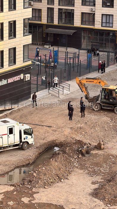 Жители дома №22 района Джал-29 сообщили, что во время строительства детской площадки прорвало трубу водоканала.