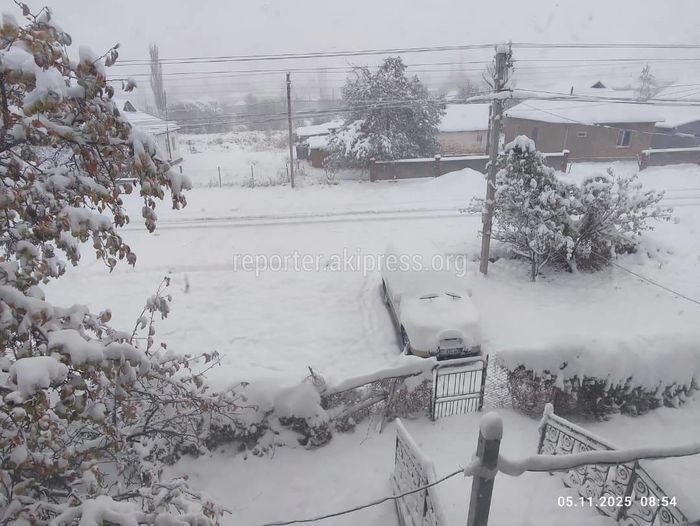 Снег в селе Кой-Таш. Фото жителя 5 нояб. 2025, 12:47 (обновлено: 14:05, 5 нояб. 2025) 488 В селе Кой-Таш Аламудунского района всю ночь шёл снег, сообщает местный житель. Фотография сделана утром 5 ноября. «Уже выпало около 20-25 см. На дорогах гололёд. Водителям надо быть осторожными», - пишет он. 11 Есть новость? Сообщи нам по номеру 0550 01 03 11 или через приложение «Репортер АКИpress»! -Поделиться-Твиттер-WhatsApp- Телеграм 488 Просмотры Читайте Репортер в t.me/ReporterAKIpress