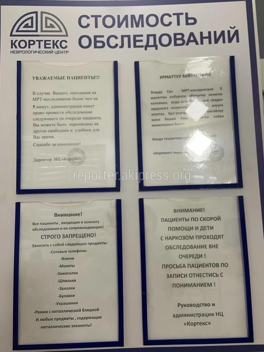 В «Кортексе» нет информации на кыргызском языке. Фото 11 нояб. 2025, 11:08 (добавлено: 11 нояб. 2025, обновлено: 13:57, 13 нояб. 2025) 1026 В неврологическом центре «Кортекс» на информационных стендах нет информации на кыргызском языке, жалуется горожанин. Он просит принять меры. 12 Есть новость? Сообщи нам по номеру 0550 01 03 11 или через приложение «Репортер АКИpress»! -Поделиться-Твиттер-WhatsApp- Телеграм 1026 Просмотры Читайте Репортер в t.me/ReporterAKIpress