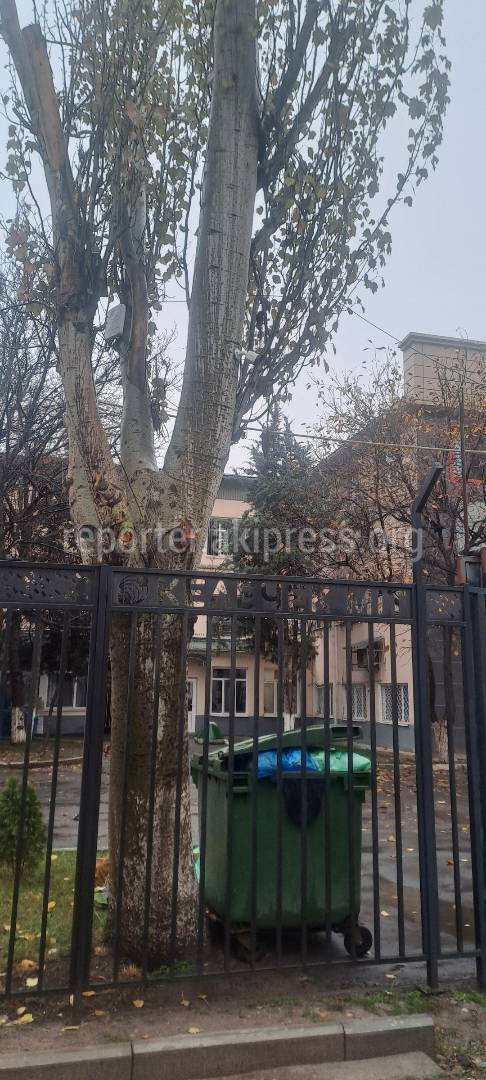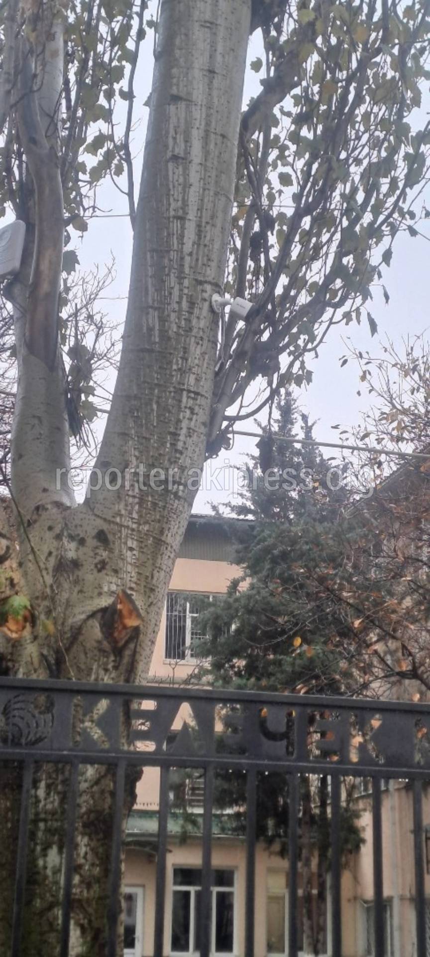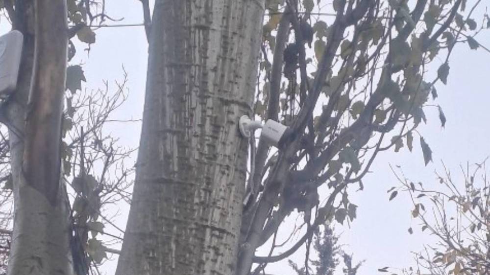 У частной школы «Келечек МИТ» камеру видеонаблюдения прибили к тополю, сообщает горожанин.