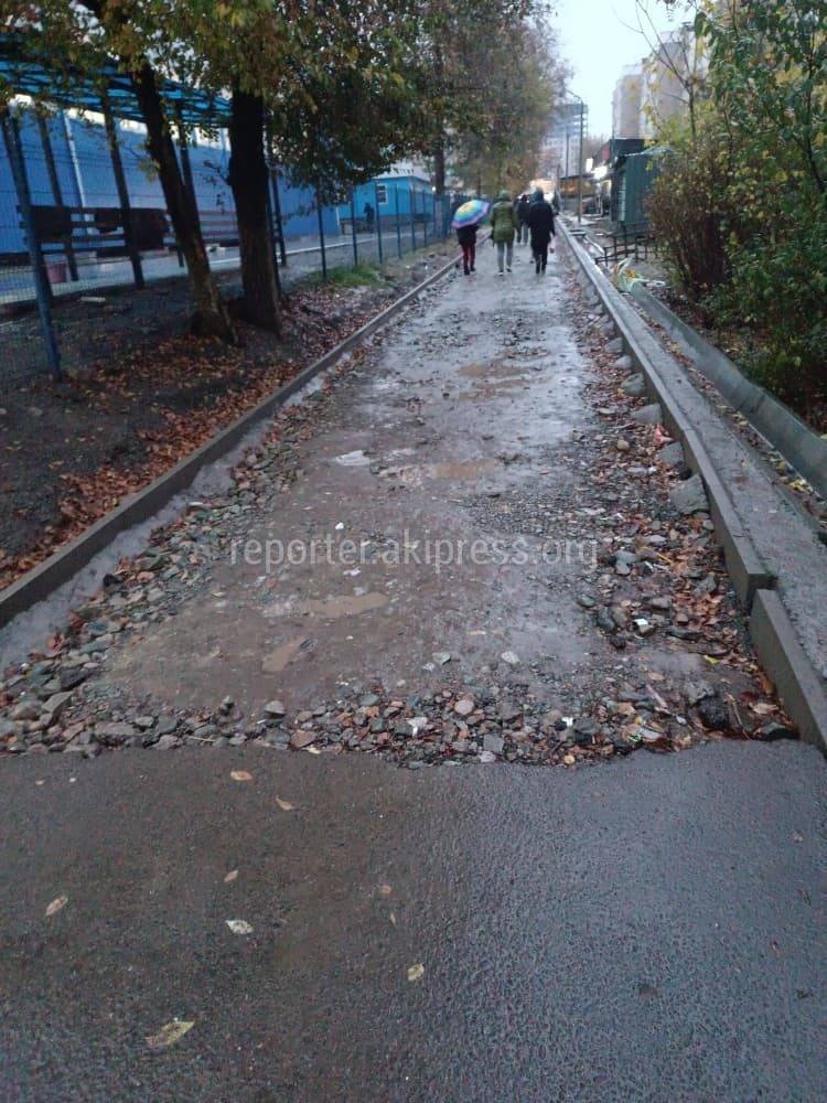 «Как проходить в такую дождливую погоду? Ужасно грязно! Зачем начали так поздно ремонт тротуара, если не успели до зимы?» - спрашивает он.