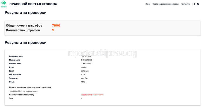 На сайте Tolom.kg у данного авто есть 5 штрафов на общую сумму 7800 сомов.
