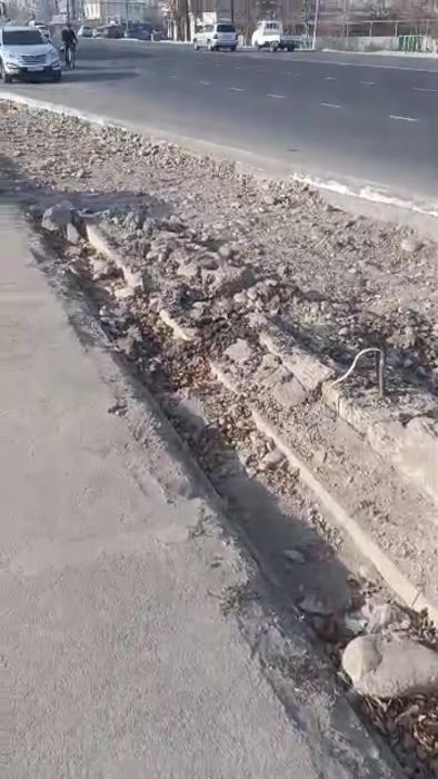 «Такая картина вдоль новой дороги. Торчат железки и кабели. Вечером нет освещения и небезопасно. Дожди и снега пойдут, будет ужасная картина», - пишет он.