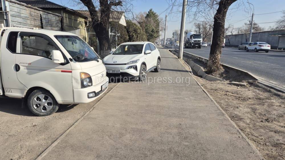 Пресс-служба мэрии города Бишкек отвечает на сообщение о том, что на новом тротуаре по Льва Толстого уже паркуются машины: