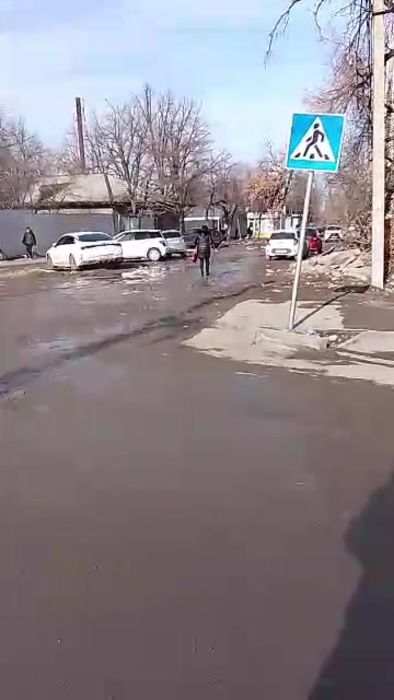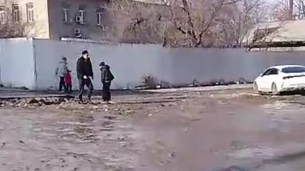 «Дорога вся перекрыта, невозможно пройти. Люди прыгают через арык. И такая картина уже полгода. Куда смотрит мэрия? Рядом больница и школа», - пишет он.