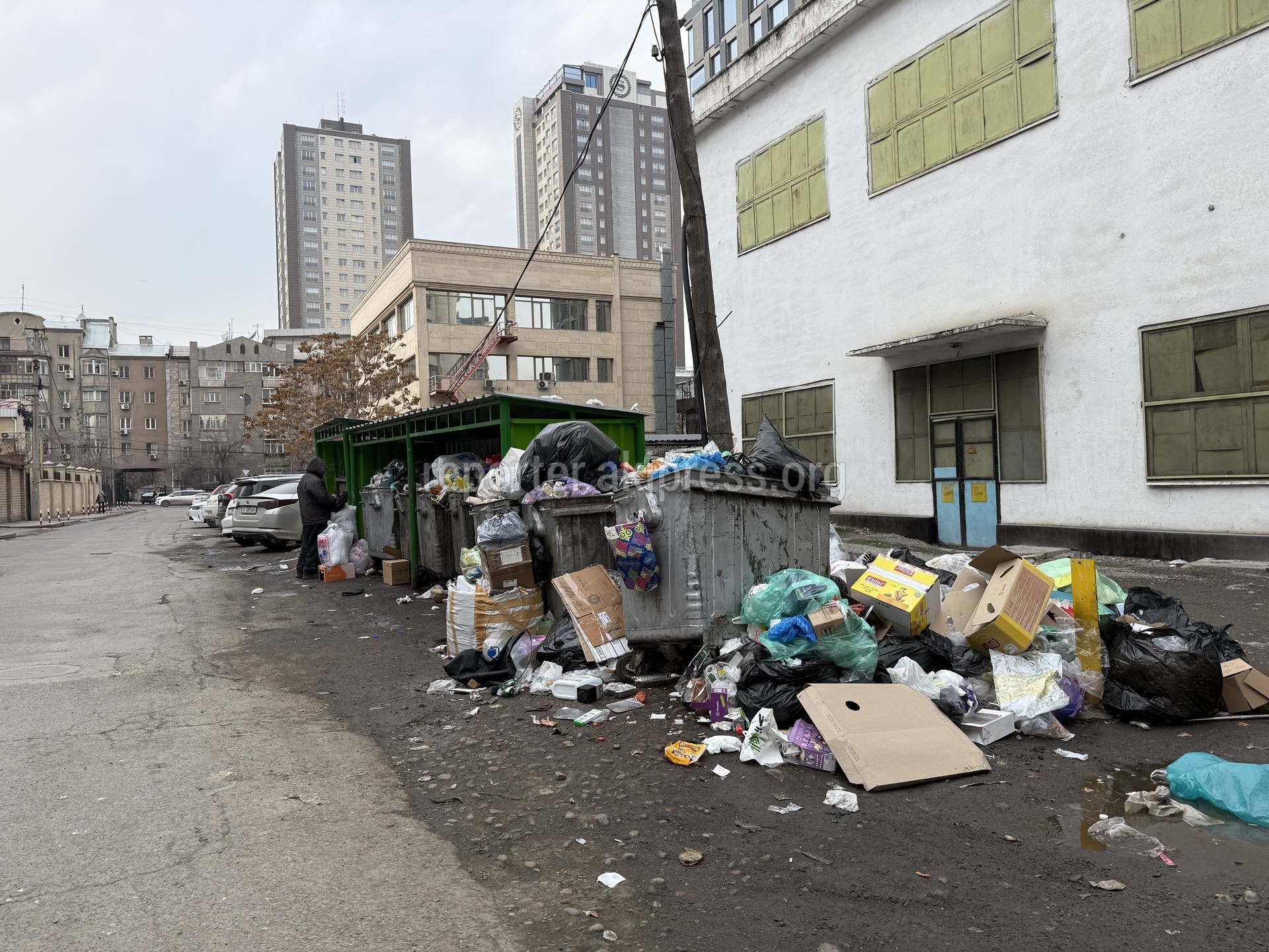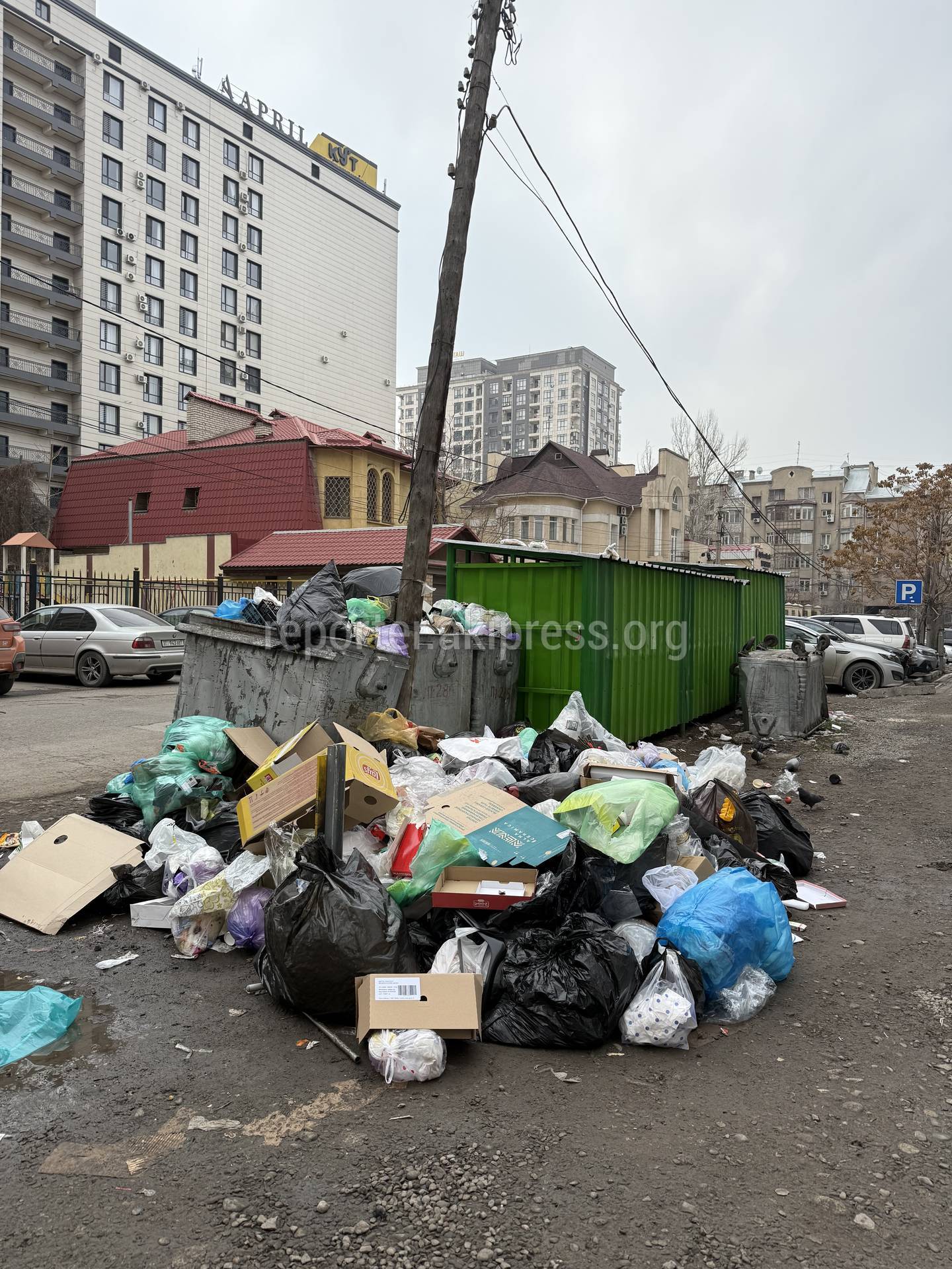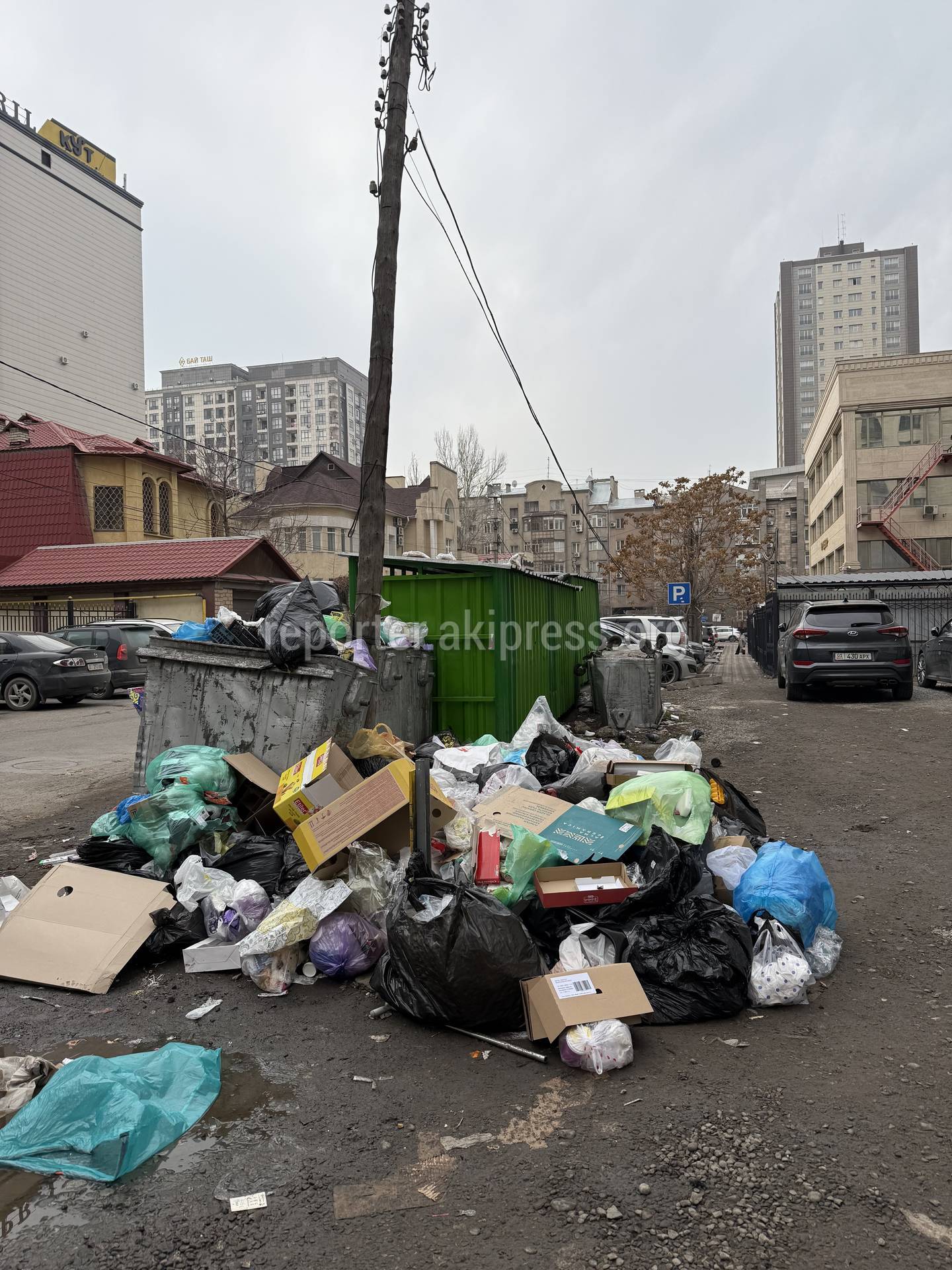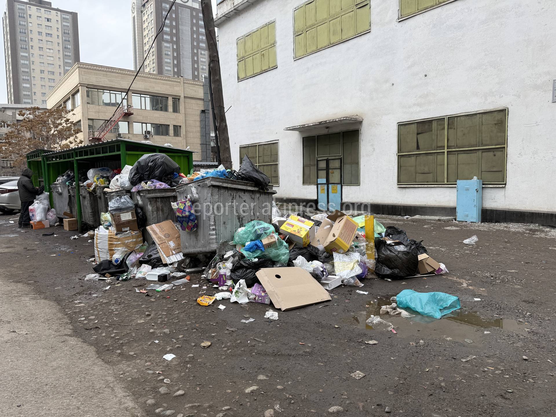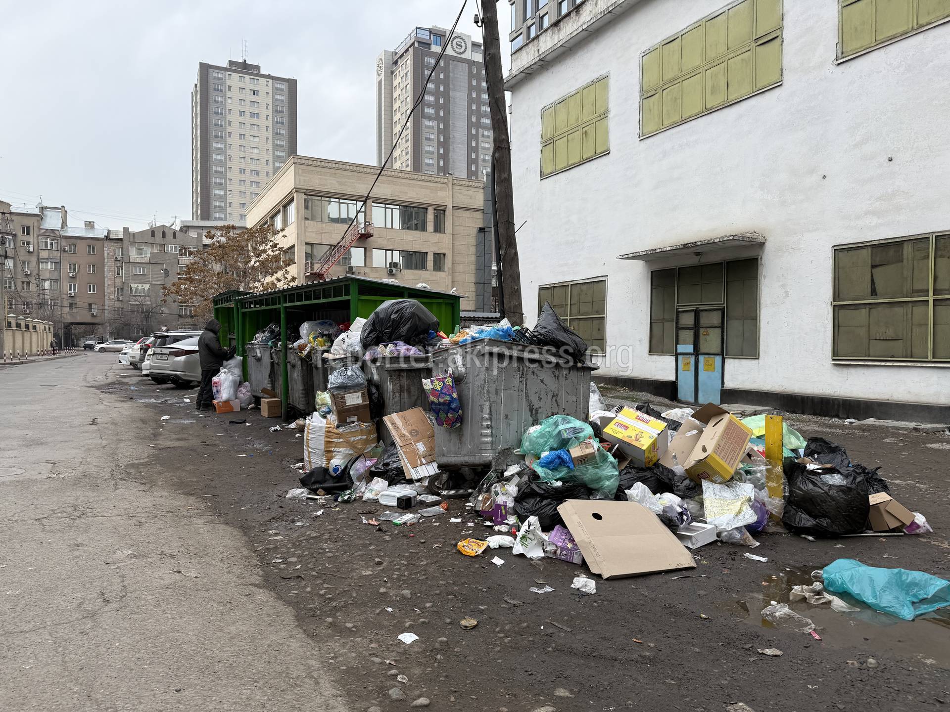 Житель центральной части Бишкека 13 декабря пожаловался на переполненные мусорные контейнеры.