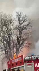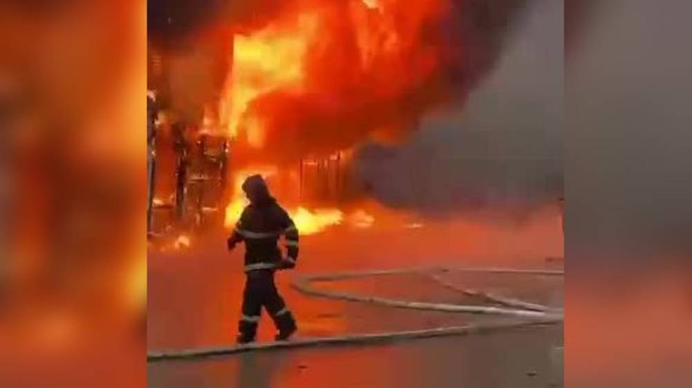 По предварительным данным МЧС, площадь пожара составляет 500 кв.м. Пострадавших нет.