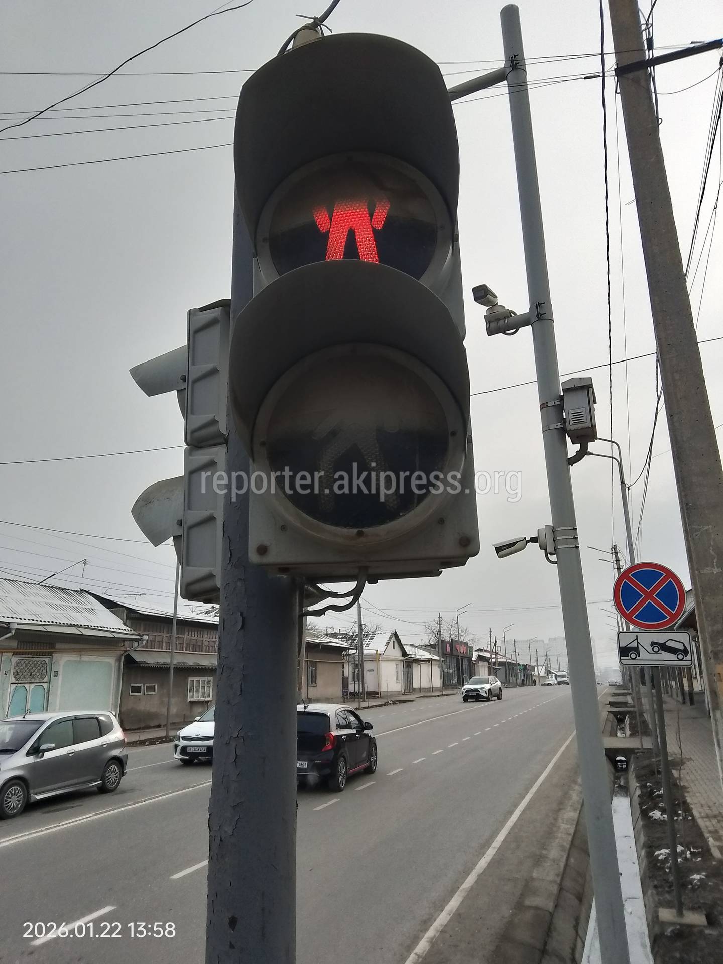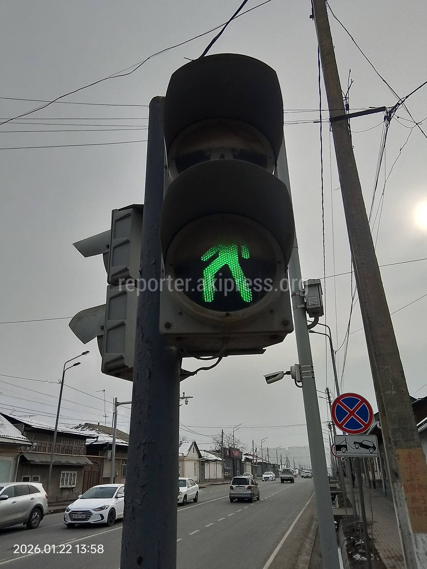 Пешеходный светофор в городе Ош покрыт слоем грязи, из-за чего сигналы светофора в виде силуэта пешехода видны не полностью, пишет житель.