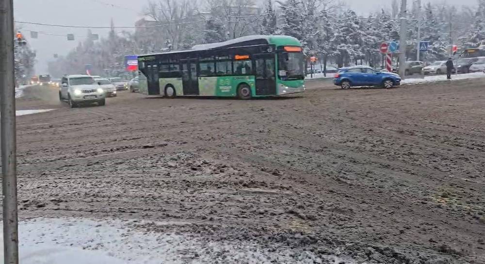 Горожанин просит расчистить снег на проезжей части на Масалиева—Байтик Баатыра