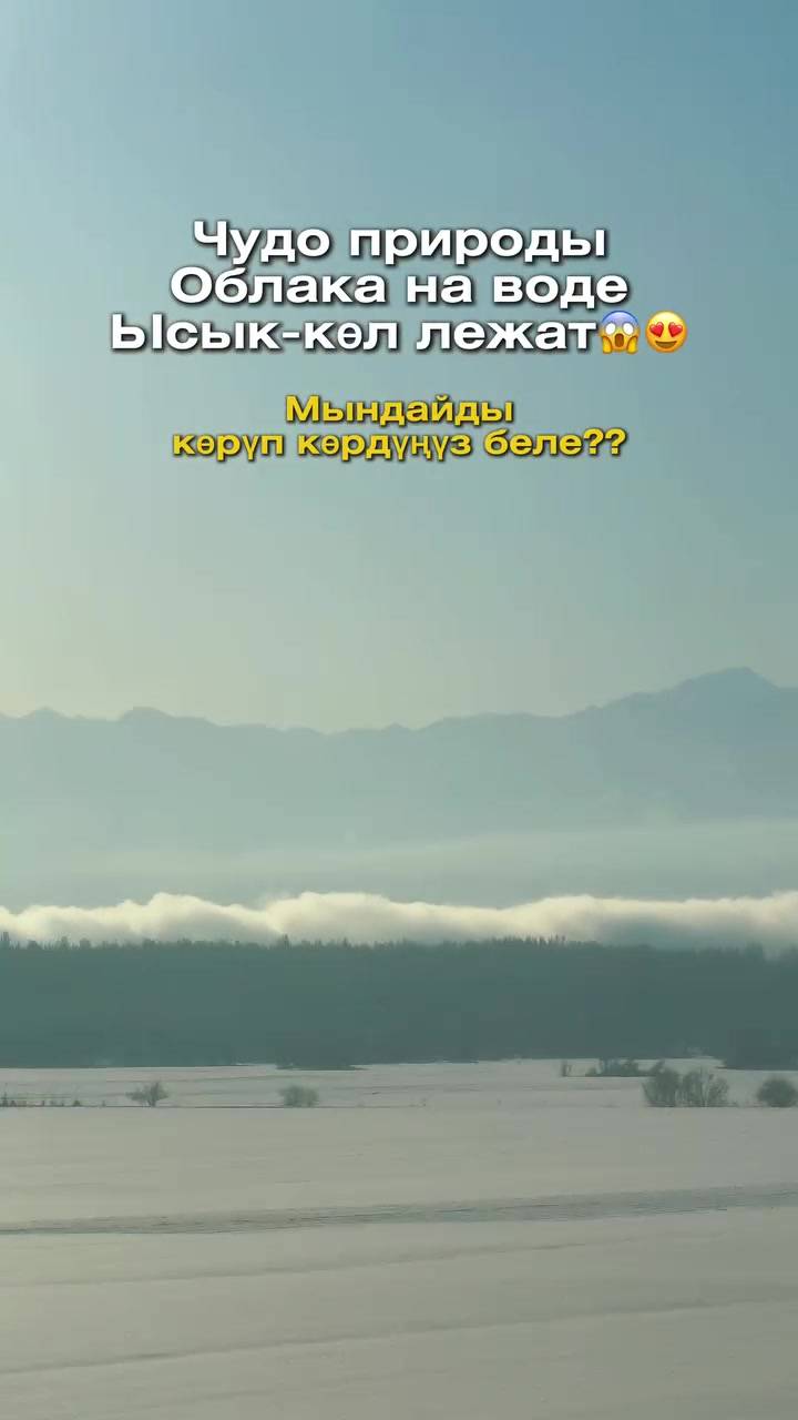 Облака лежат на воде на Иссык-Куле. Видео 31 янв. 2026, 14:34 7175 Блогер из России снял на видео необычное явление на Иссык-Куле. Видео он опубликовал у себя в соцсетях @stepanjaratman.kg. «Чудо какое-то. Я видел туман над водой, а это облака лежат на воде», - пишет он. 14 Есть новость? Сообщи нам по номеру 0550 01 03 11 или через приложение «Репортер АКИpress»! -Поделиться-Твиттер-WhatsApp- Телеграм 7175 Просмотры Читайте Репортер в t.me/ReporterAKIpress
