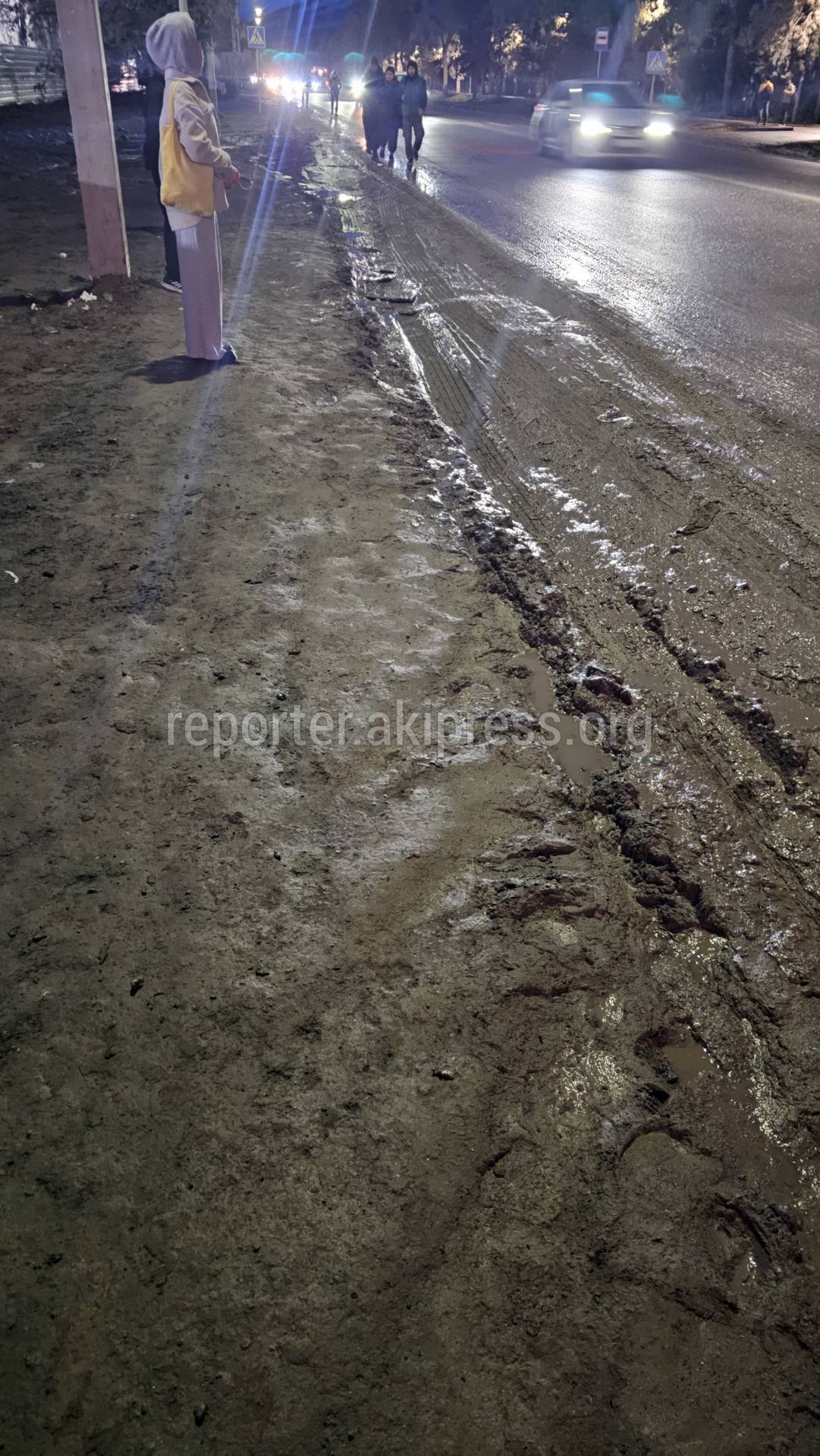 Жители домов в районе улиц Байтик-Баатыра и Южного БЧК просят улучшить состояние дороги до остановки — убрать грязь, проложить палеты до остановки, засыпать гравием площадку.