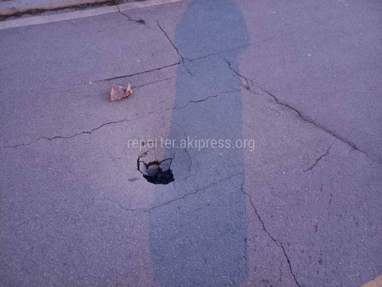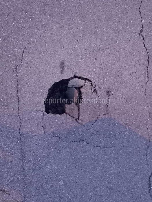 На данную новость получен ответ В МП «Бишкекасфальтсервис» ответили, что яму на Масалиева—Токтоналиева заделают при потеплении