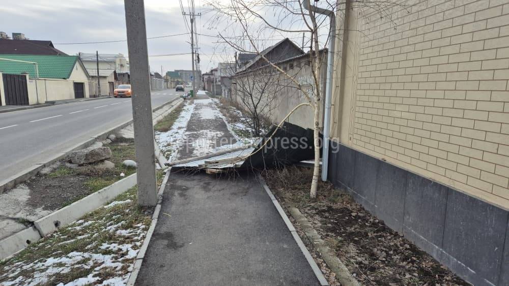 На улице Баба-Ата между улицами Бакаева и Куттубаева на тротуаре уже полгода лежит забор, сообщил горожанин. По его словам, он упал еще летом во время ветра, но его никто не убирает.