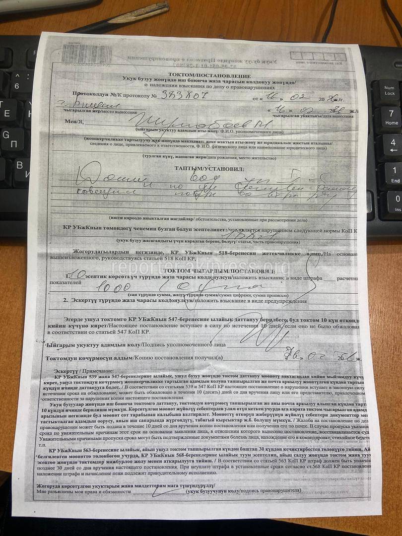 «По информации МП «Бишкекский городской транспорт», водитель автобуса автоколонны №7 маршрута №175 с госномером 01KG199AB Турусов М., нарушил правила дорожного движения. В отношении водителя составлен соответствующий протокол, а также собранные материалы будут переданы в дисциплинарную комиссию для принятия дополнительных мер», - говорится в сообщении.