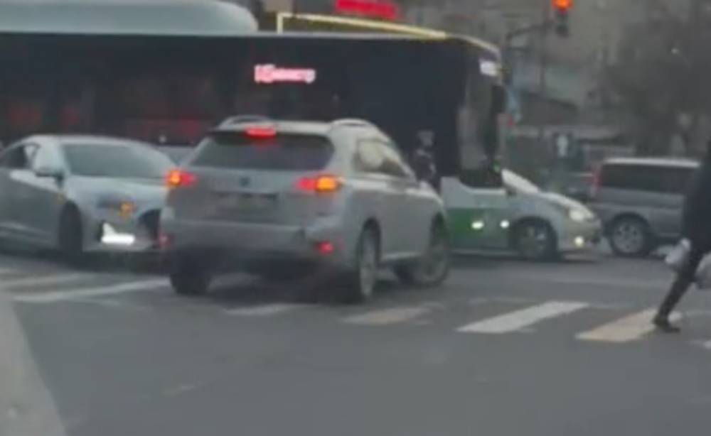 Водитель за рулем «Лексуса» с госномером 01KG450AAZ выехал на встречную полосу на перекрестке Абдрахманова—Боконбаева, сообщил горожанин. Видео было снято вечером 19 февраля.