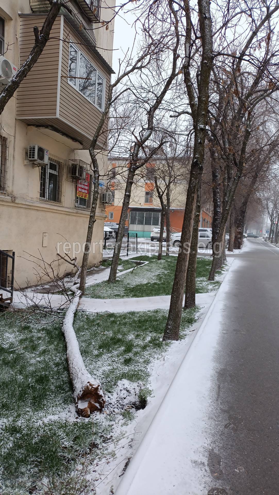 Возле пересечения улиц Ч.Айтматова и Горького лежит дерево, упавшее после сильного ветра, сообщил горожанин.