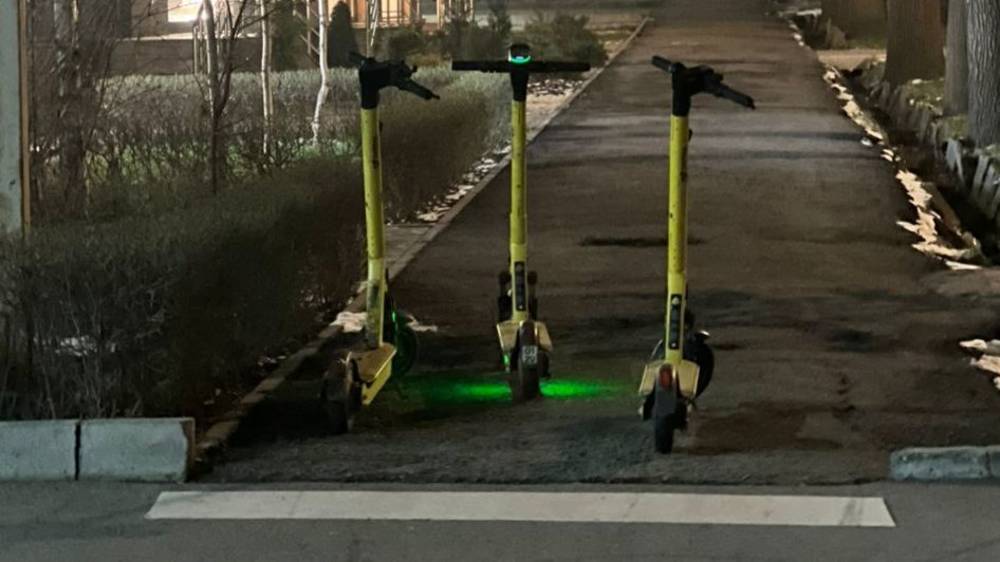 На пересечении бульвара Эркиндик и улицы Чокморова самокаты стоят на тротуаре, закрывая пешеходный переход, сообщил житель.