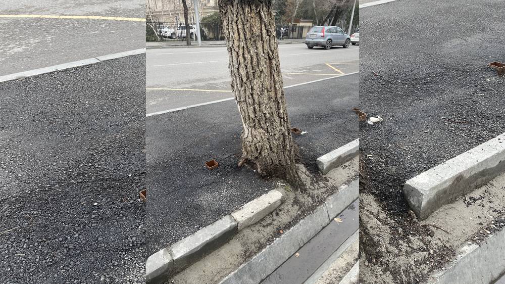 На данную новость получен ответ Компания, которая заасфальтировала тротуар вместе с деревом, оштрафована на 17 тыс. сомов