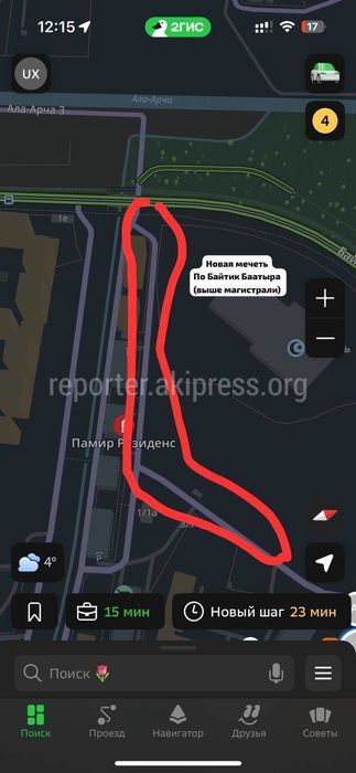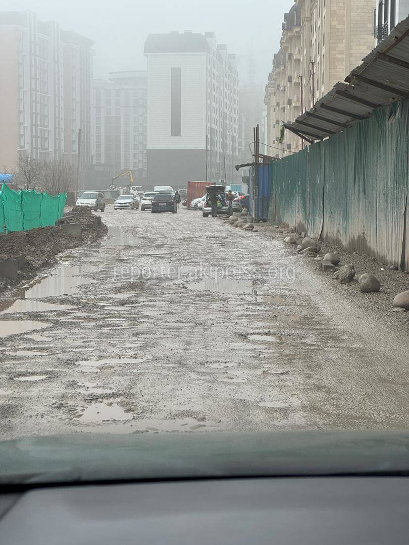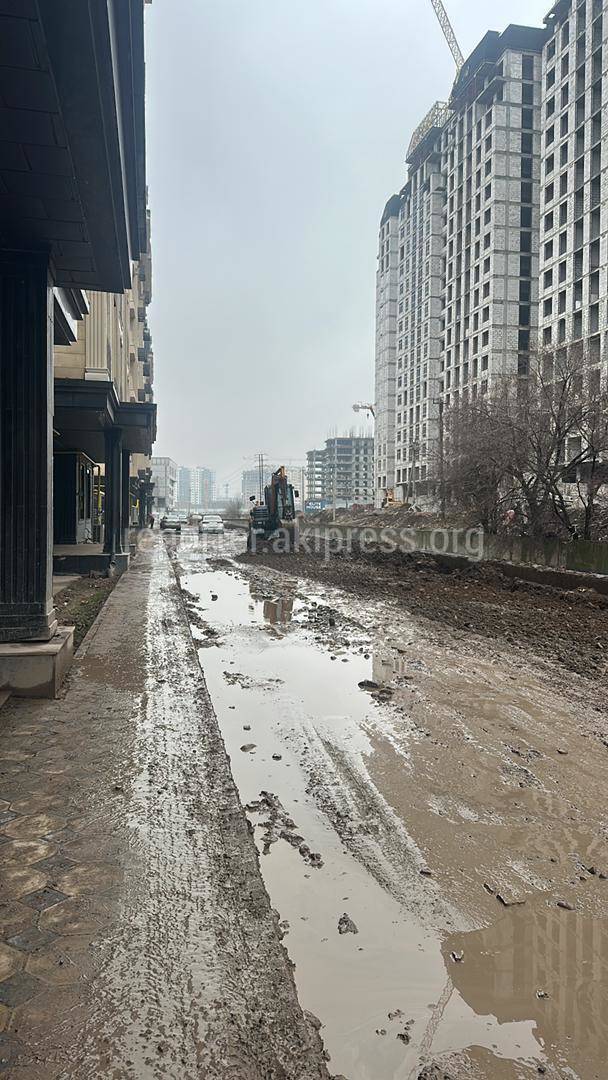 Жители района по улице Байтик Баатыра выше улицы Масалиева просят обратить внимание на состояние дороги рядом со строительством новой мечети.