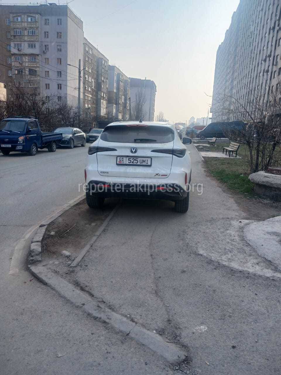Машина припаркована на тротуаре в микрорайоне Джал на улице Минжилкиева, сообщил житель. Фотография отправлена утром 17 марта.