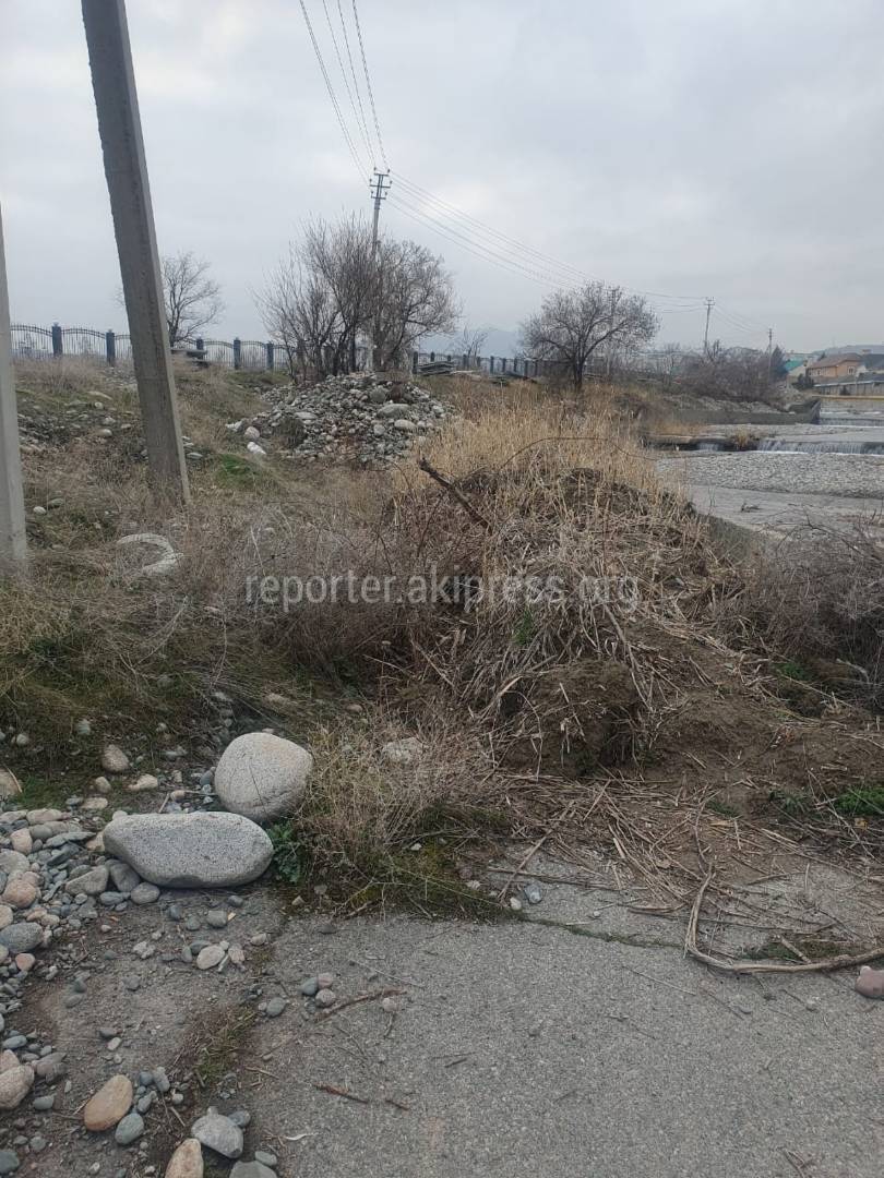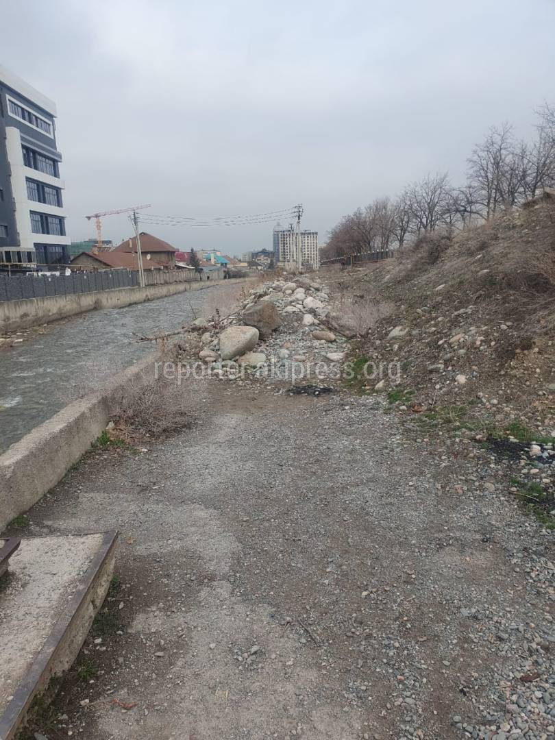 После очистки в 2025 году реки Аламедин на тротуаре вдоль русла реки бардак, пишет житель. На фотографиях тротуар вдоль верхней зоны Ботанического сада между улицами Сухэ-Батора и Масалиева.