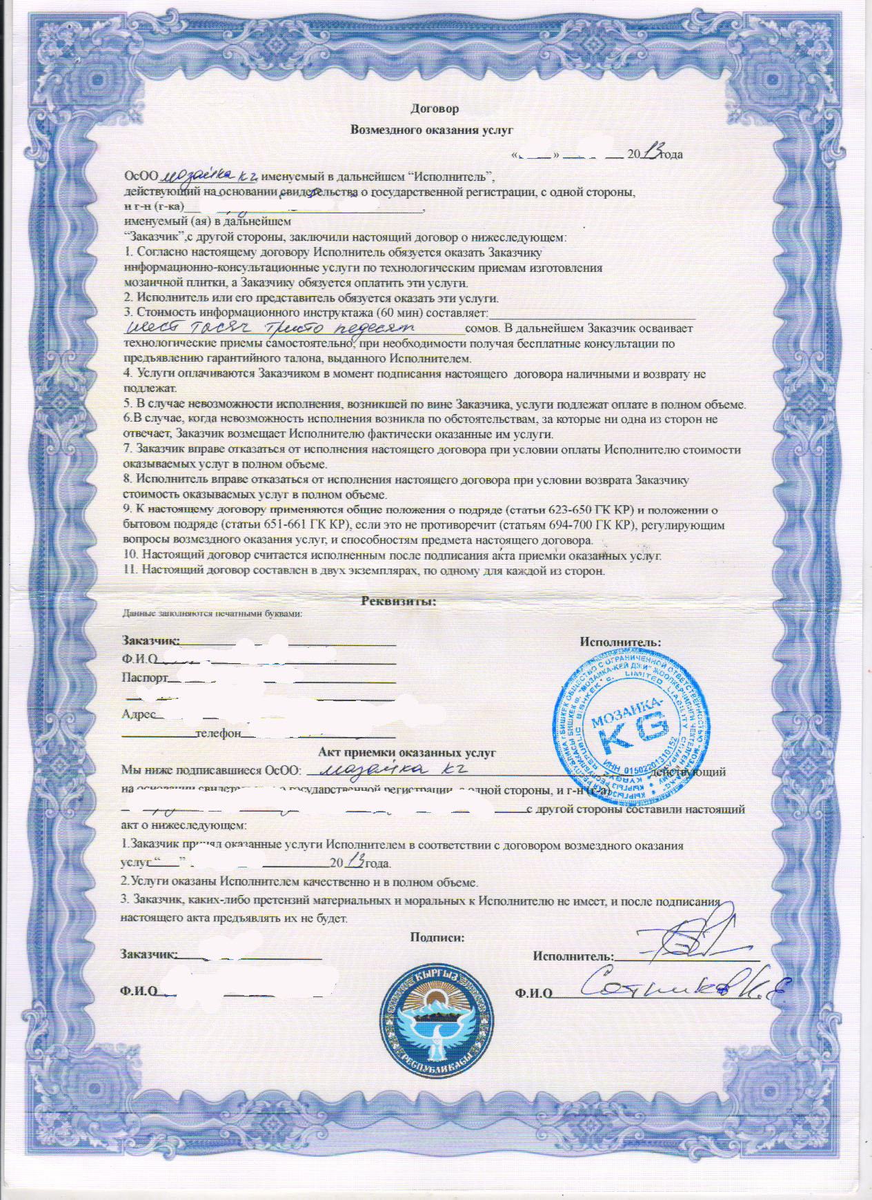 Суть мошенничества очень проста: Вы подписываете договор на обучение и платите за это 130 $. В договоре указано, что Вы оплачиваете за инструкцию по обучению, а не за то, что Вас обеспечат работой, всеми расходными материалами и т.д. И целый час вам действительно рассказывают о том, как делать мозаику. А что же дальше ? Потом Вам говорят, что нужно сделать шаблон самостоятельно для собирания мозаики, с точностью до миллиметра расчертить его, чтобы накладывать готовую мозаику на него. Этот шаблон мало у кого получается сделать и сдать его с первого, второго и даже десятого раза.