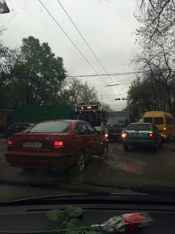 «Из-за данного ДТП образовалась большая пробка с ул. Токтогула и некоторые нетерпеливые водители выехали на тротуар, нарушая правила дорожного движения и подвергли опасности жизнь пешеходов», - пишет он.