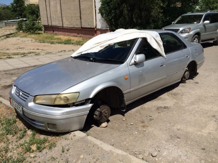 В микрорайоне Восток-5 Бишкека 24 мая сняли колеса и разбили боковое стекло автомашины «Тойота Камри», сообщает читатель «Репортера».