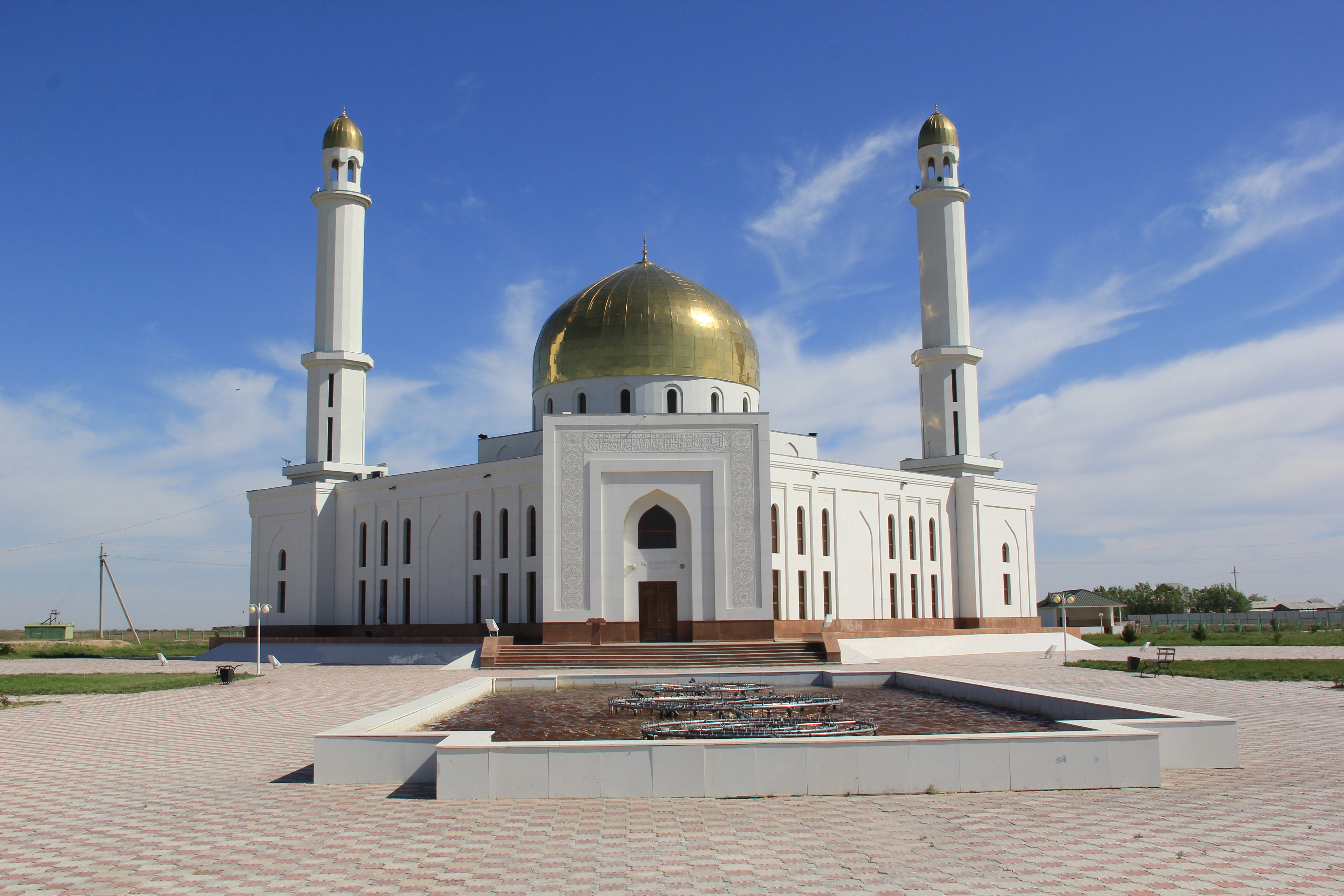 Напротив мавзолея находится белоснежная мечеть с золотыми куполами – это уже современная постройка