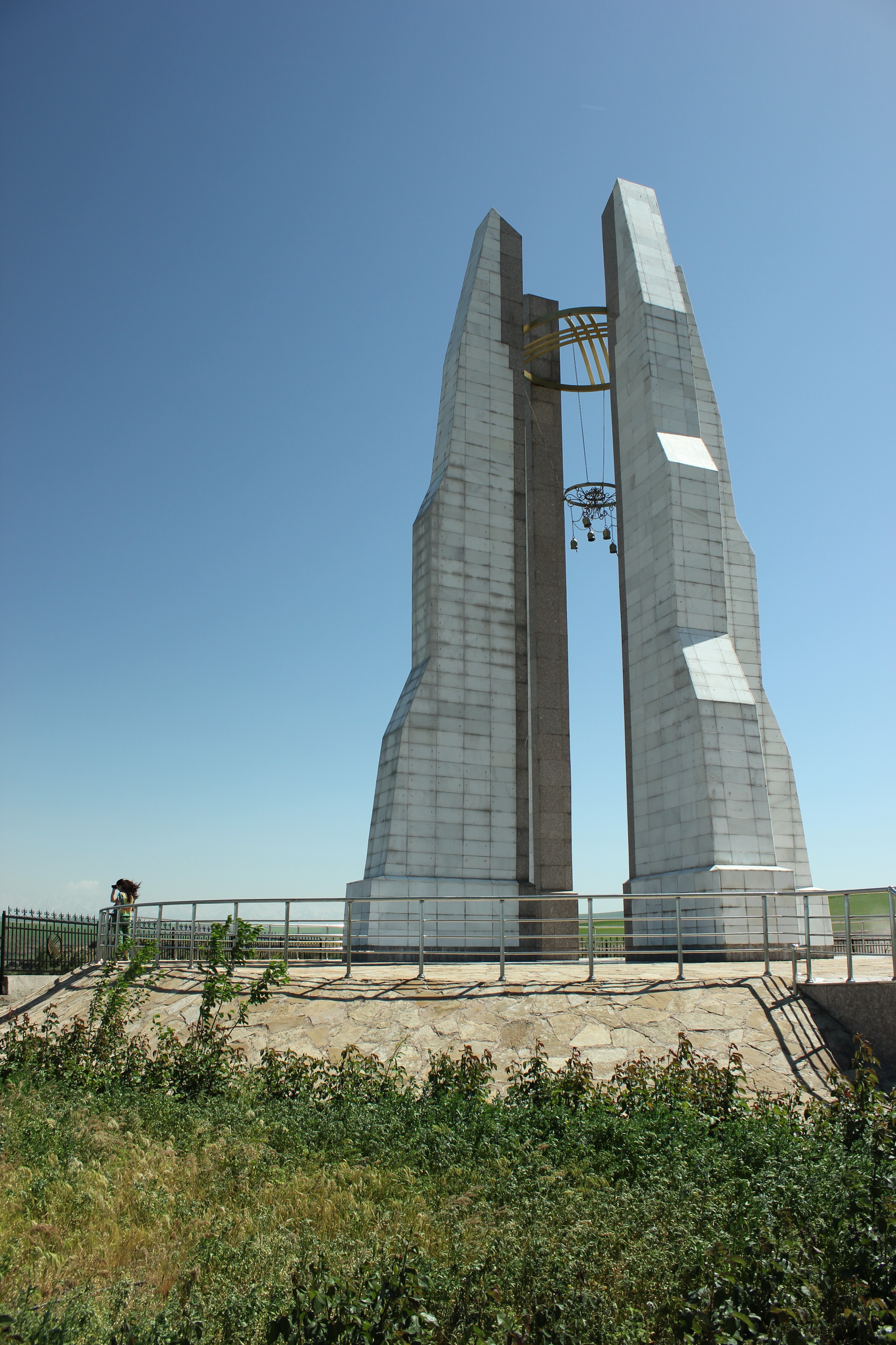 Может быть, поэтому именно здесь, на этом открытом для воздушных потоков пространстве, и построено сооружение из четырех колонн увенчанное таким знакомым и родным для кыргызстанцев тундуком. К нему подвешены колокола, поющие непрерывную песню – среди них и гуляет ветер – вечный звонарь.